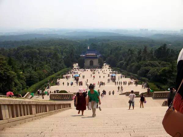 中山陵是我国伟大的民主革命先行者孙中山先生的陵墓,它坐落在江苏省南京市东郊钟山东峰小茅山的南麓,西邻明孝陵,东毗灵谷寺,整个建筑群依山势而层层上升,气势宏伟!1925年3月12日,孙中山在北京逝世,遵照他生前安葬在钟山的遗愿,灵柩暂停放在北京香山碧云寺内,并决定在南京钟山修建他的陵墓。中山陵由陵墓样稿得奖者、著名建筑师吕彦直设计施工。陵坐北朝南,傍山而筑,由南往北沿中轴线逐渐升高,依次为广场、石坊、墓道、陵门、碑亭、祭堂、墓室。下面就是陵园路。长达3公里的“绿荫长廊”两侧,种植着南京最主要的行道树——梧桐树。这条路也是南京绿化最好的一条林荫路。出了陵园路,前方便是中山陵前的半月形广场和石坊由广场踏阶而上,迎面是一座四楹三阙门的冲天式石牌坊。这座牌坊建于1931~1933年,高12米,宽17.3米。建坊用的都是大块福建花岗岩,但采用的却是中国传统木结构形式。大家抬头可以望见坊额正中金光闪闪的"博爱"两字。这两个字是孙先生的手迹,原出自唐韩愈《原道》"博爱之为仁"一语。据说孙先生生前最爱题这两字送人。孙先生毕生以伟大的博爱精神致力于资产阶级民主革命,为民族的独立自由奋斗不息,可以说"博爱"二字正是对他一生的高度概括和最好写照。
