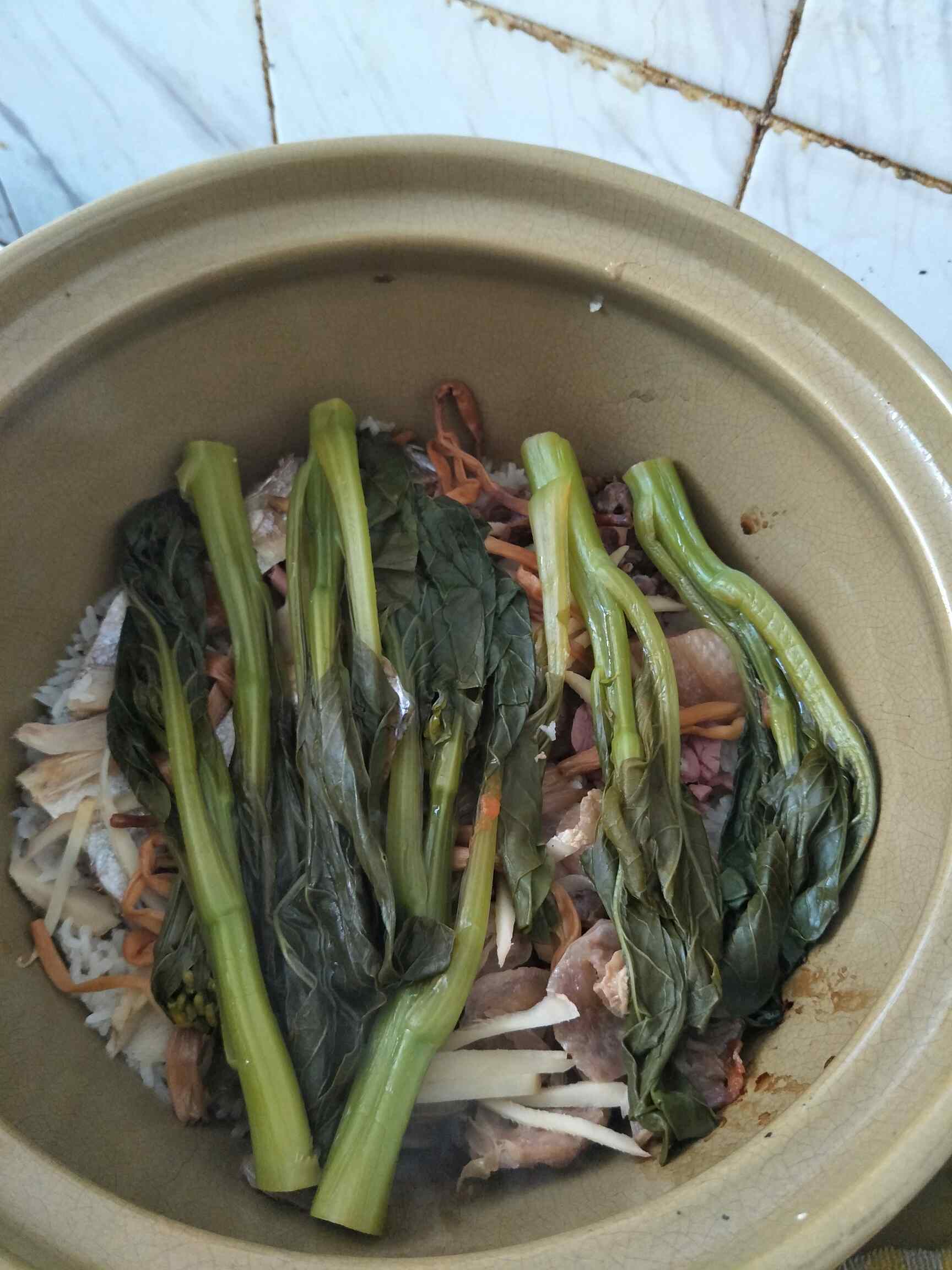 腊味煲子饭味道超正的,有菜的那个呢,不小心闷了一下,还有烫的时候呢,没放油,所以黄了,失误一点就这样了,不能懒,不能懒!!
