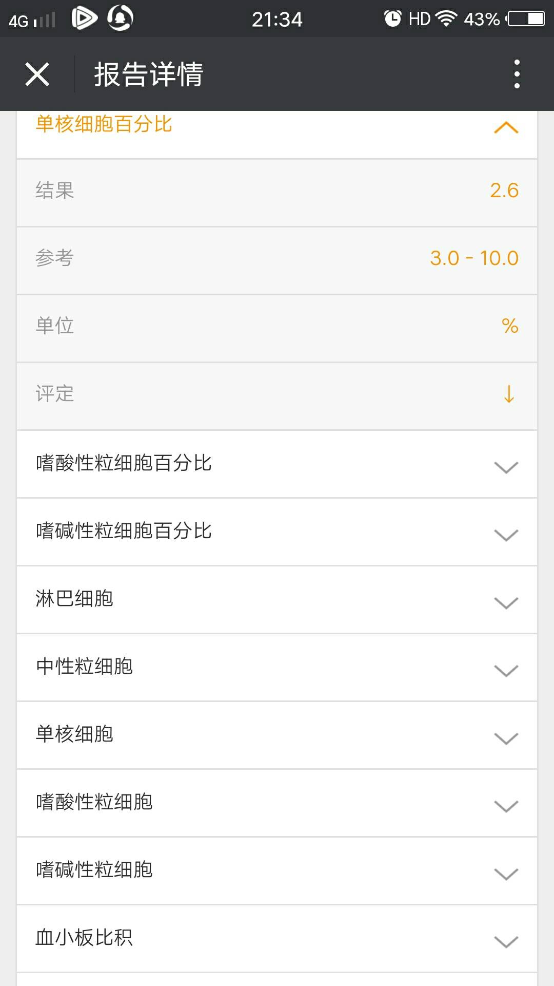 说回我检查结果如下图。黄色字表示结果不理想,其他都正常。又可以减激素了,明天开始每天两粒。最后给自己一个拥抱。活着真好!!!