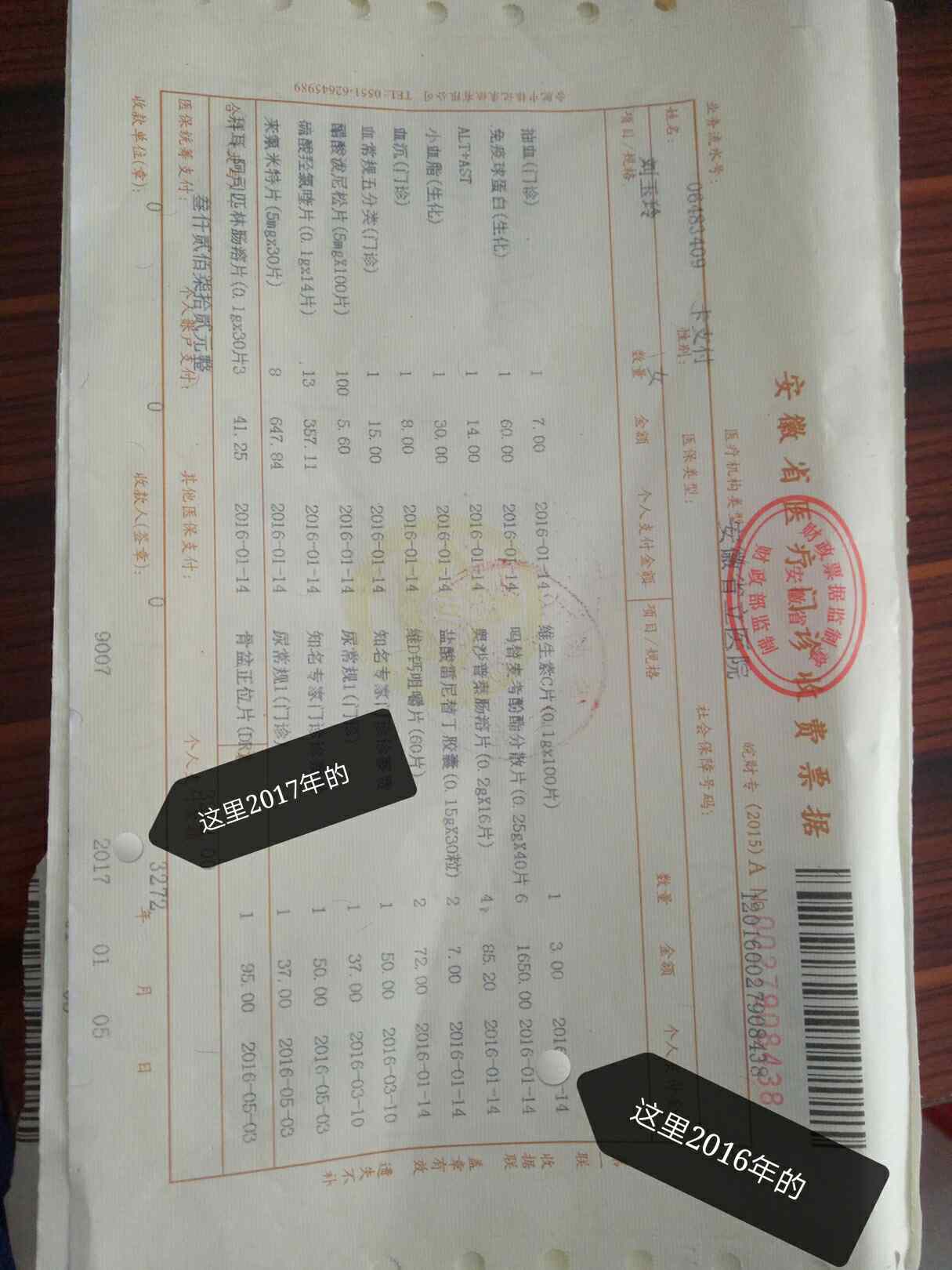 我想问下大家 这医院打的发票为啥药的后面的显示2016年的 而下面打的是2017年几月几号的 那么这个发票到底是2016年的还是2017年的?按上面药的后面的日期还是下面的日期???我有点看不懂?