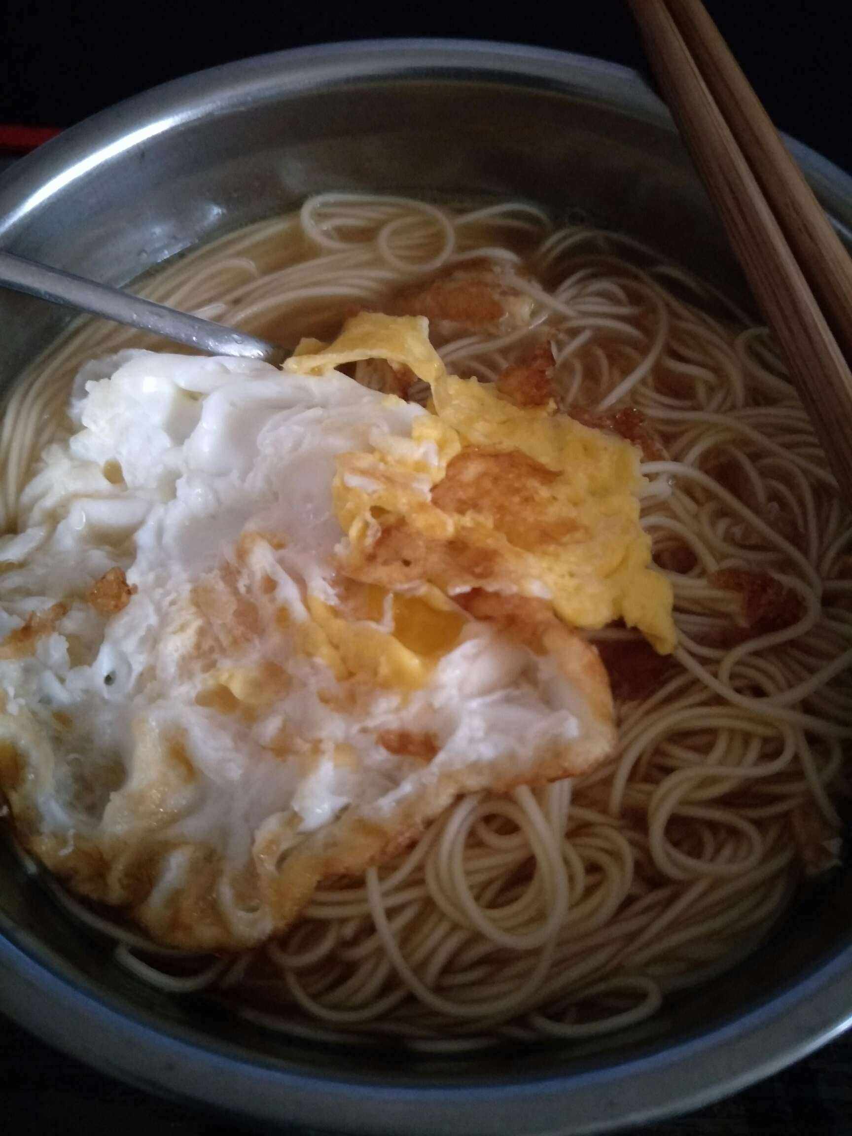 好啦,然后,煎个蛋,熟了后,放入水,蛋捞起来,煮开,调味,放入面条,煮熟,放上鸡蛋,开了即可!