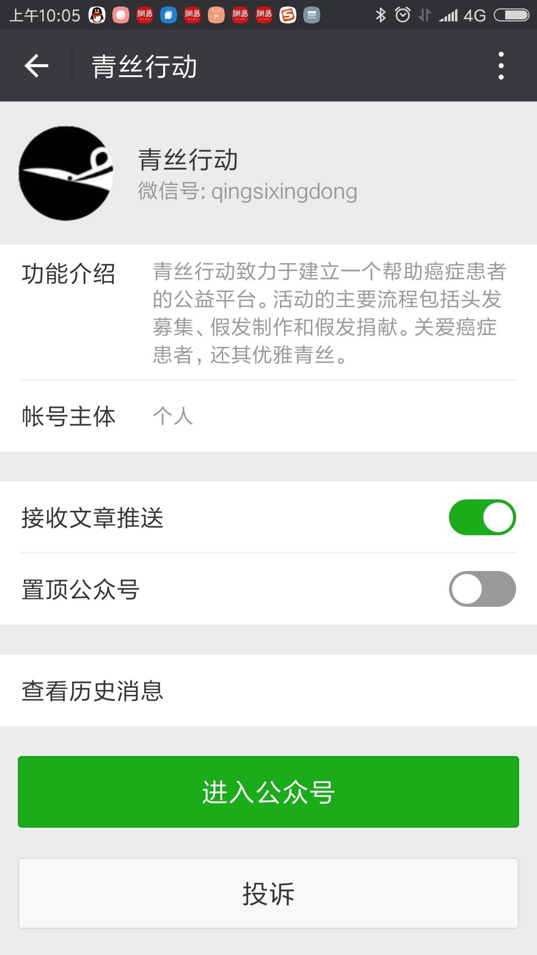 昨天看到一个好友发朋友圈把头发捐赠了,然后头发会交给假发公司捐给化疗掉发的患者,活动叫青丝行动,问她要来了公众号。大家有需要的可以具体咨询下,具体我也不是很清楚