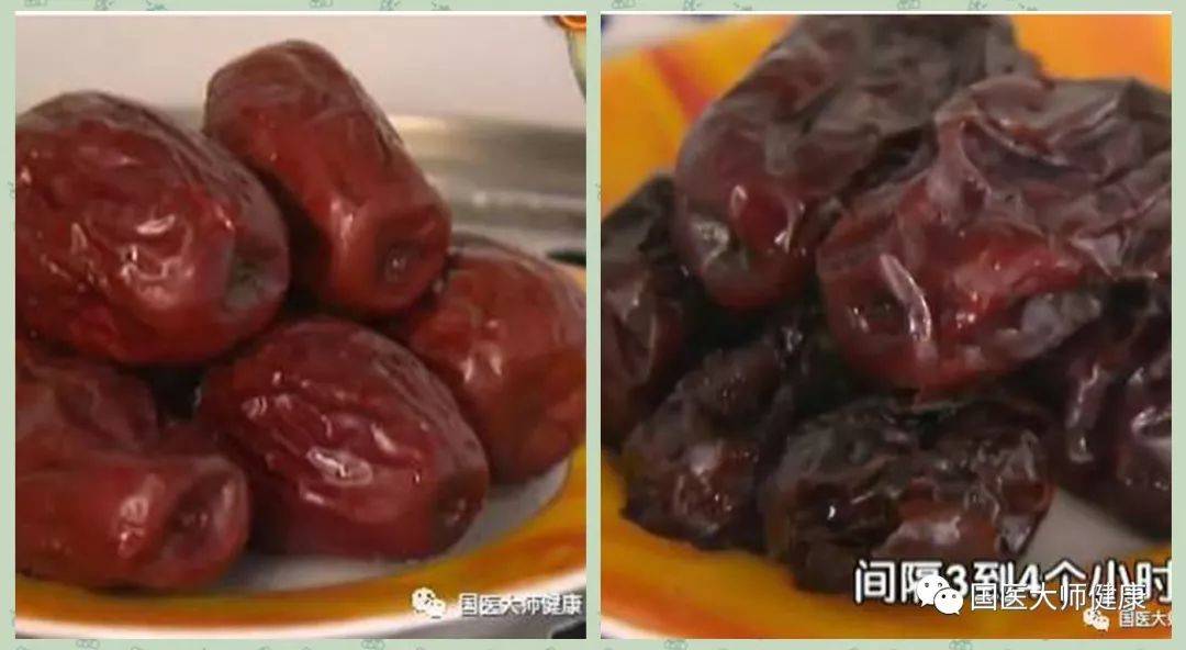 你看这个蒸了三次的枣子,这个颜色也不一样了,口感也不一样了,药性也变了,它的养脾、养血的作用就强一些,蒸了三次后:更好吃了、适用的人更多了、药效更明显了。