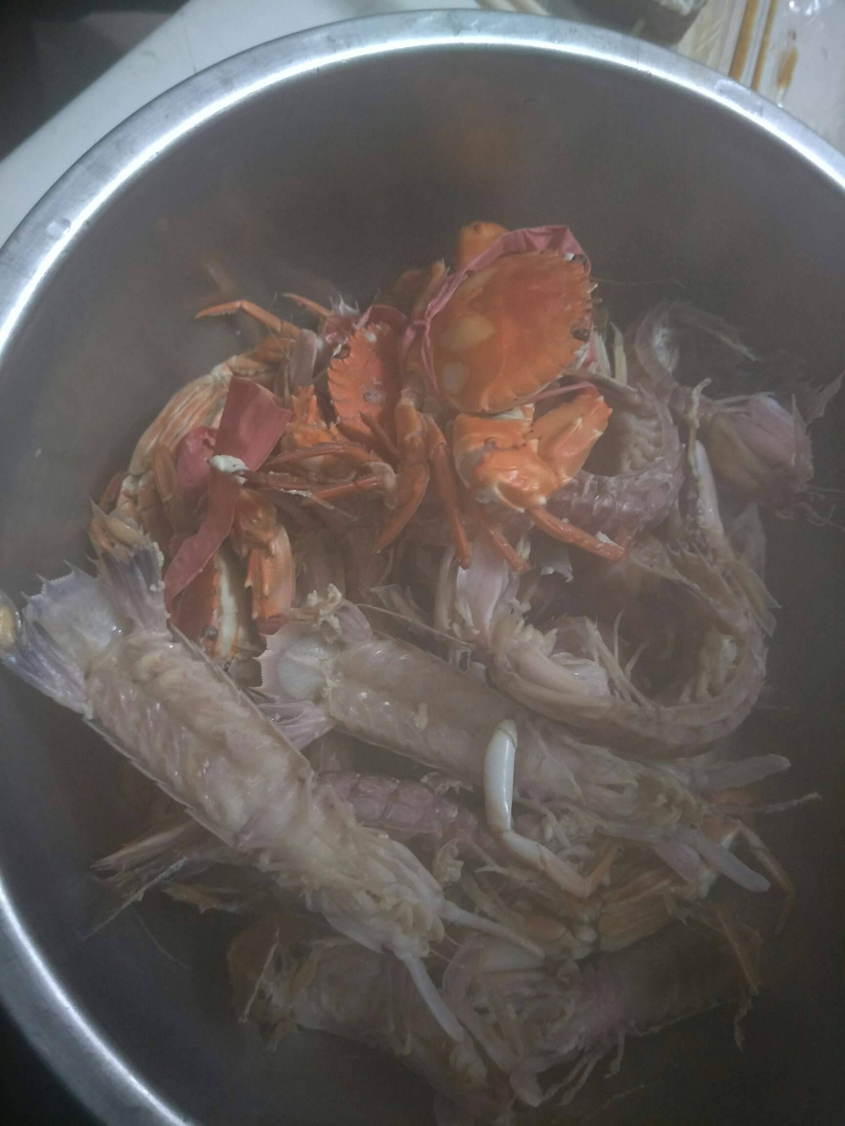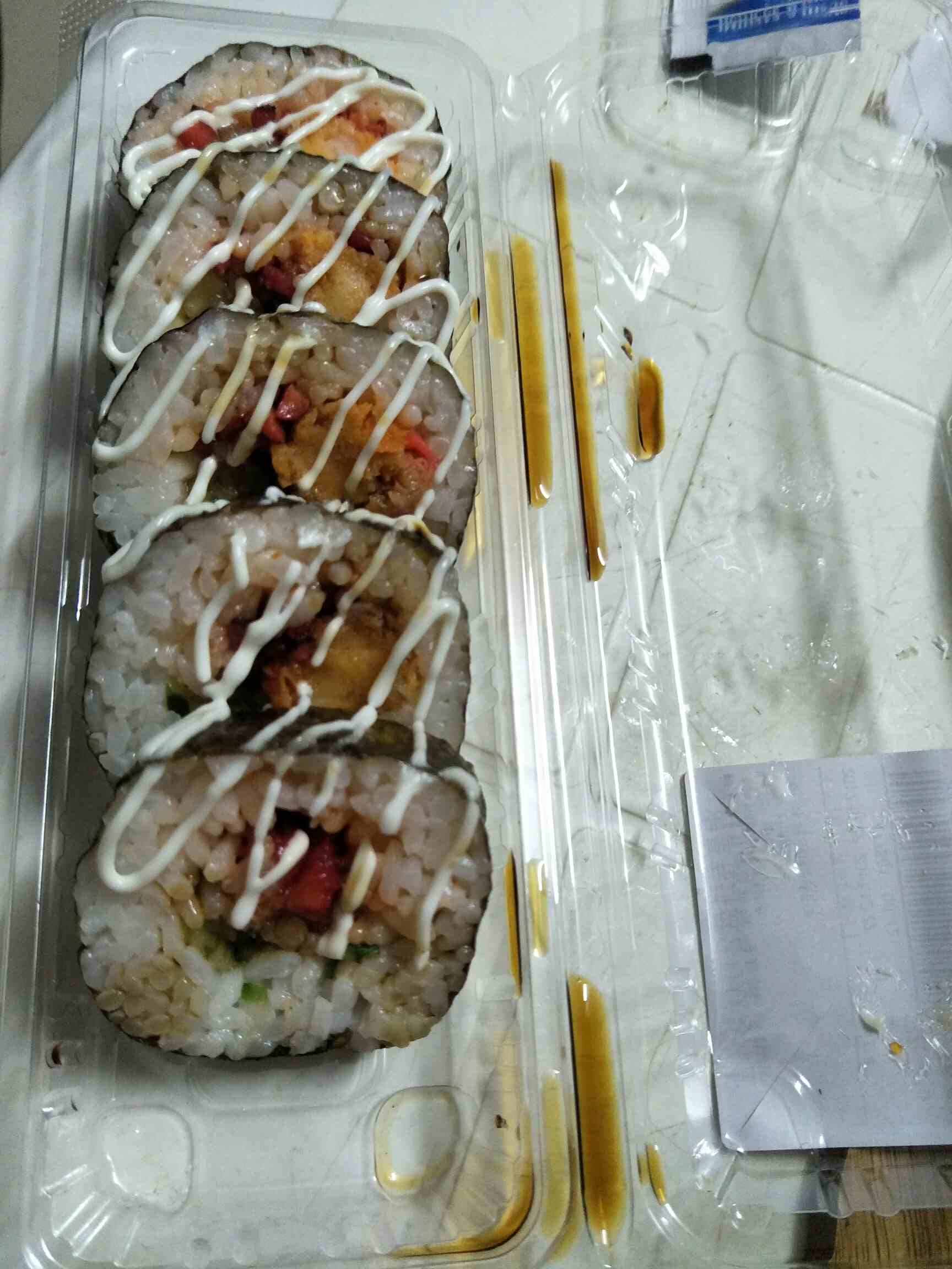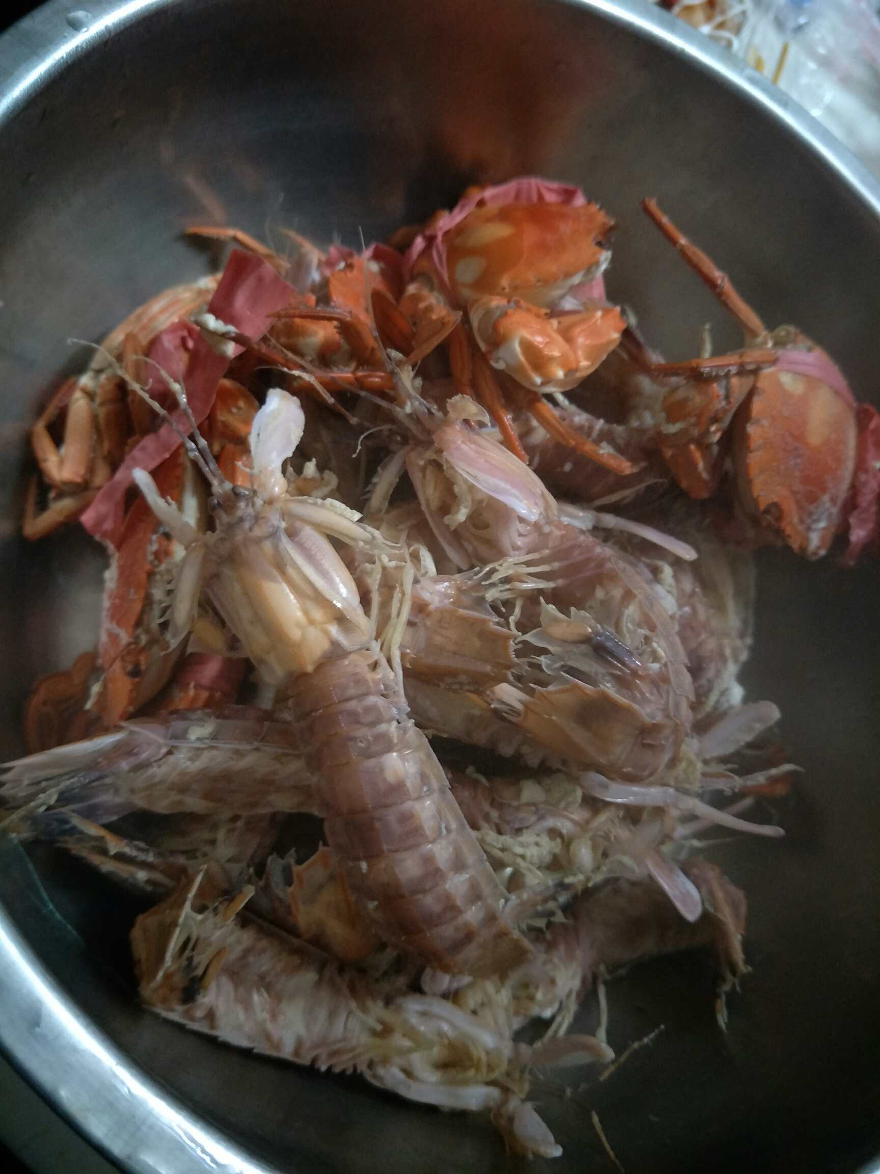 感觉有点多了,不过还好,皮皮虾和蟹吃完了,鸡没吃,寿司吃完了,还有茶果吃了一半吧