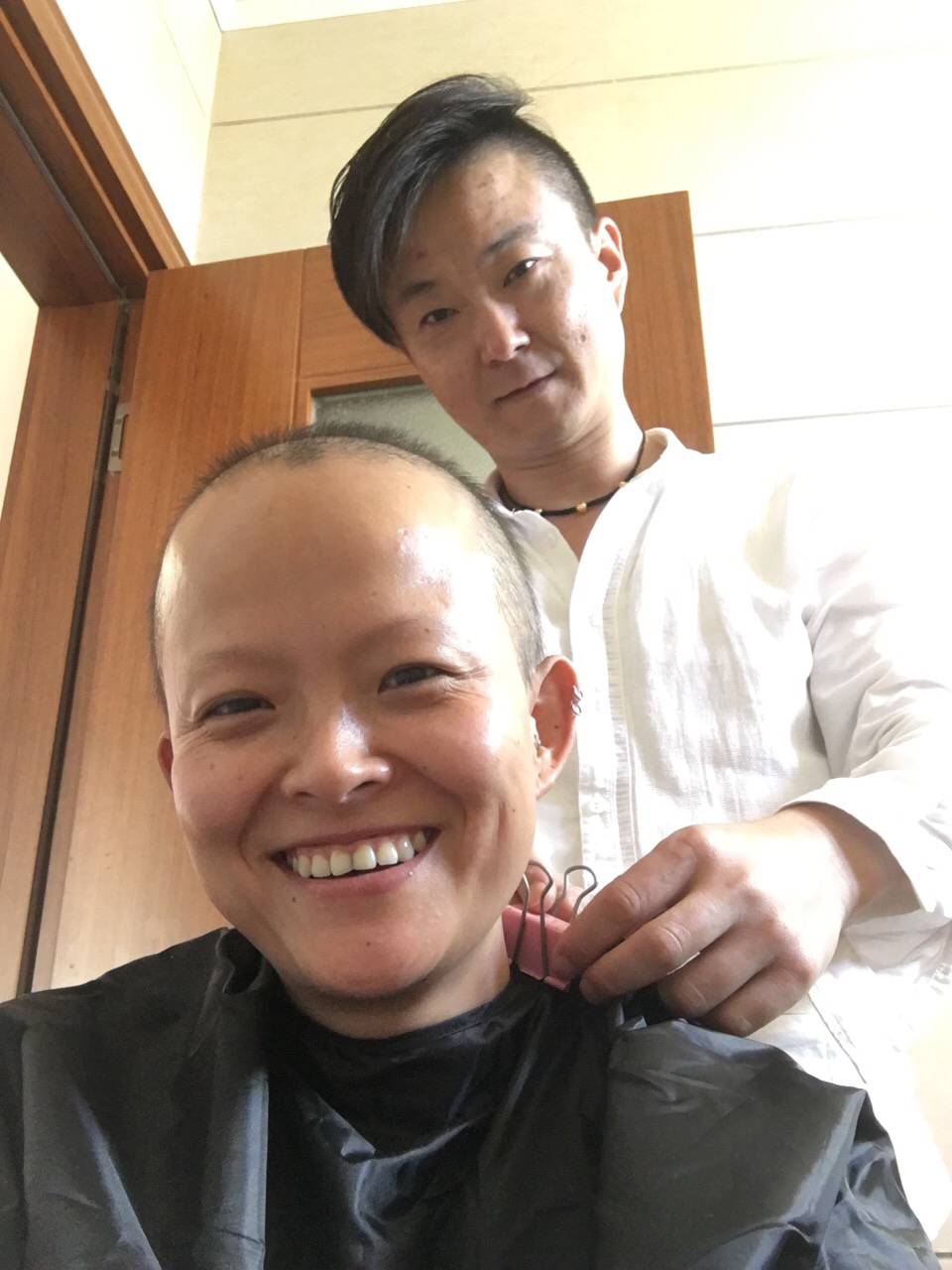 2016跨年夜在闺蜜家合影留念光头造型