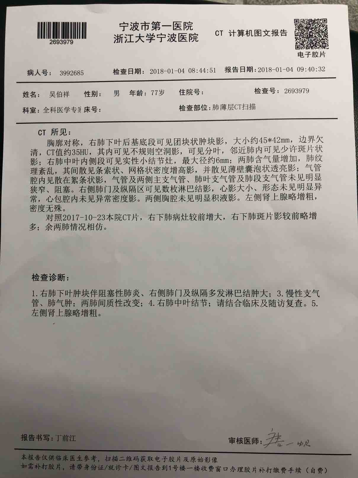 又细看了之前的报告:7.14cT,肺门口2.4×2.6是消失了的。右肺7月到元月,5.1x6.3,→4.0x3.7→4.5×4.2。