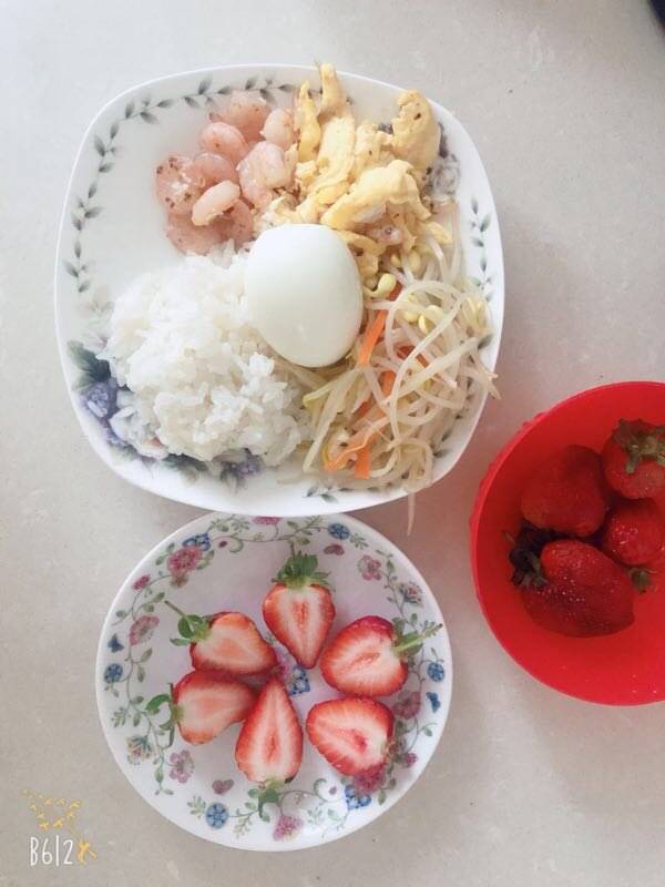 除了水果,毫无食欲的饭啊。