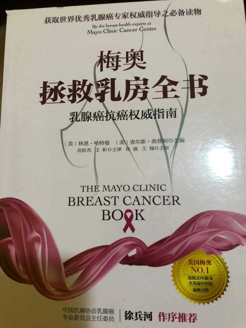 对了,不知道姐妹们爱看书么。我觉得这本美国出版的乳腺癌的书很全面,推荐给大家。我是买了英文版,又看到中文版,翻译的很好,更能帮助我们全面了解敌人,百战百胜!