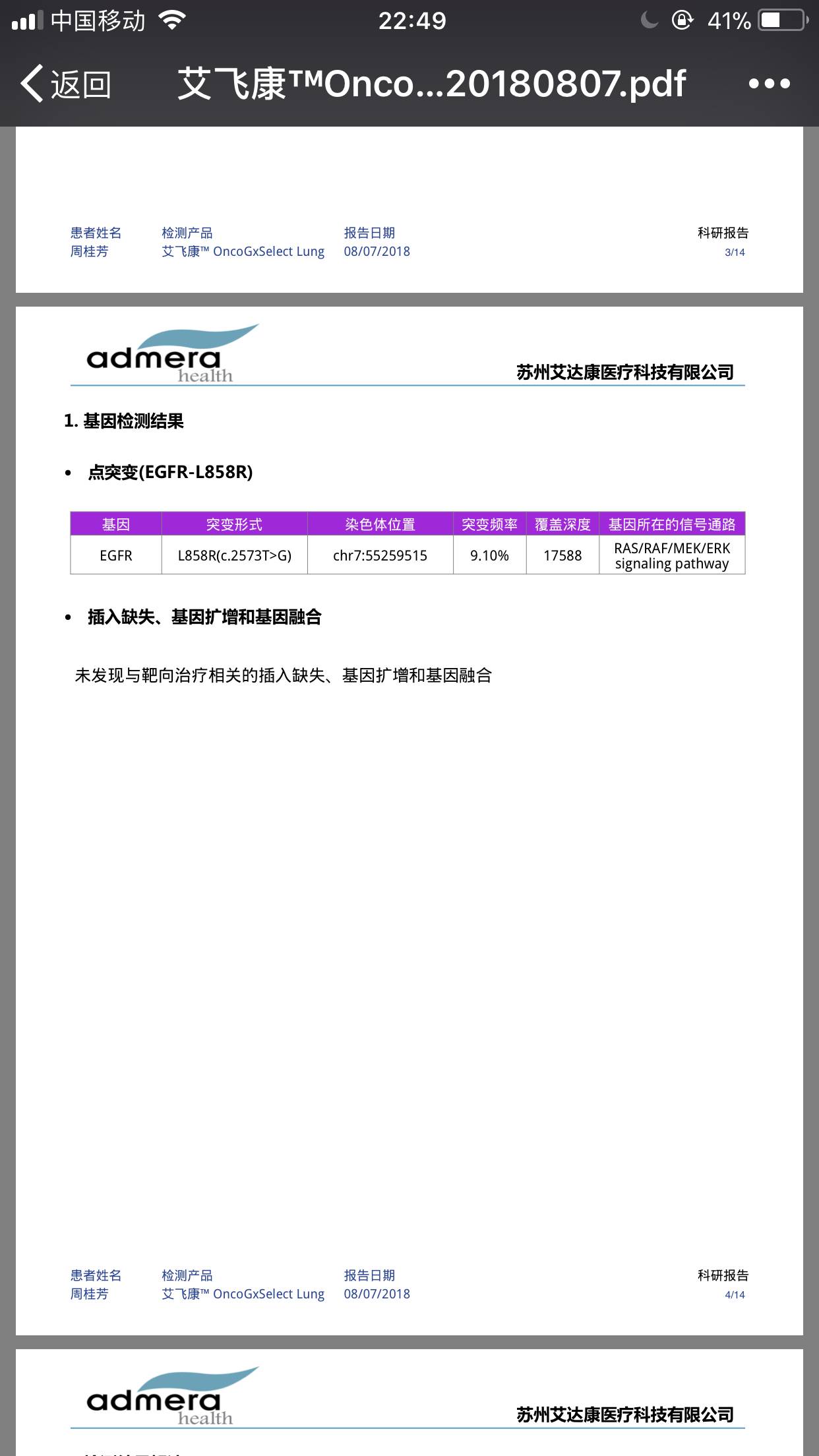 我老伴是19突变,将来治疗选择一定用的上!
