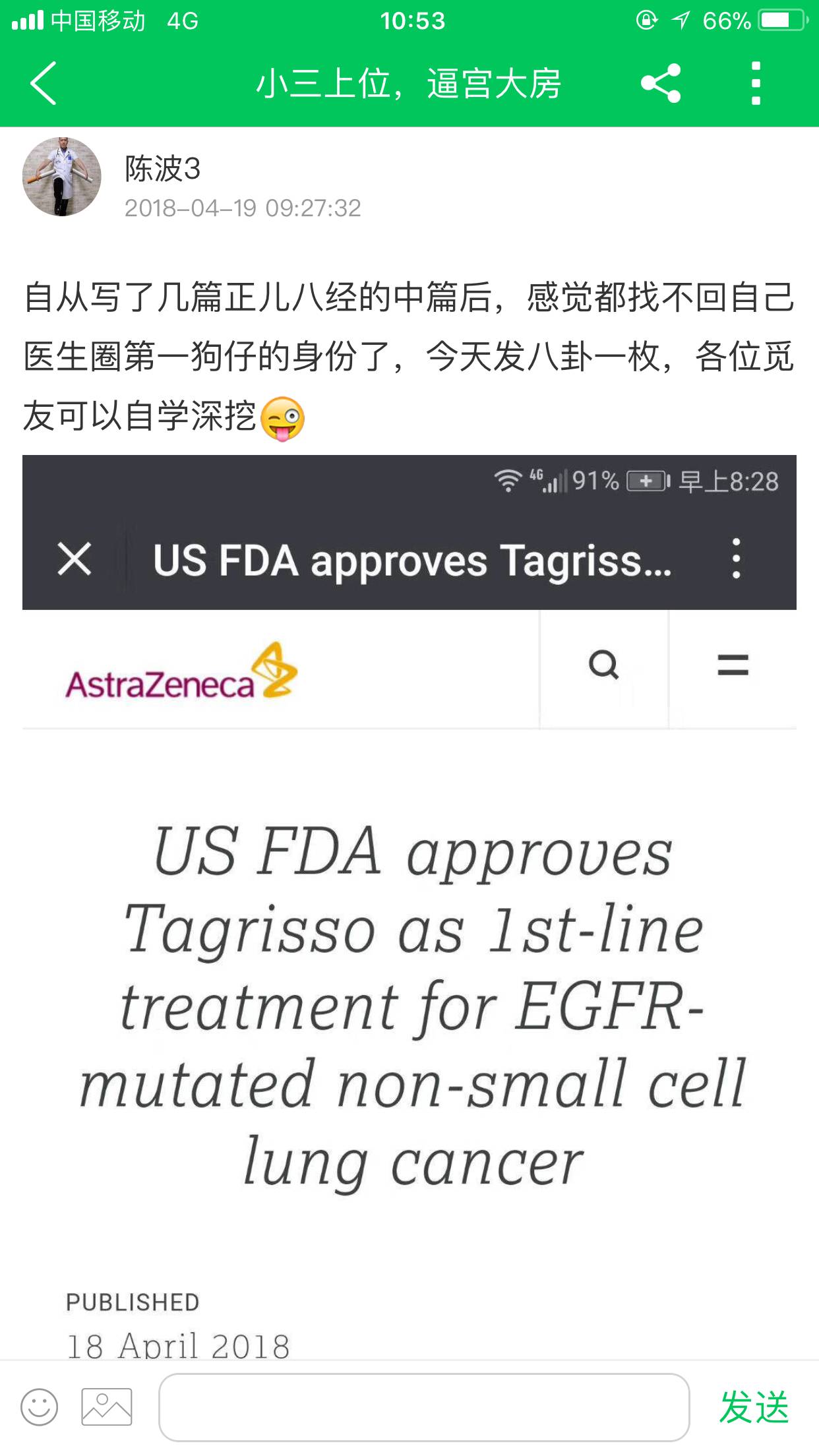7. 耐药后有解决方案。有多病友的一个主要顾虑是,先用第一代药,万一耐药后,后边至少还有一半的概率,可以用第三代药。如果直接上来就用第三代,耐药了怎么办?其实,这个问题很好回答。