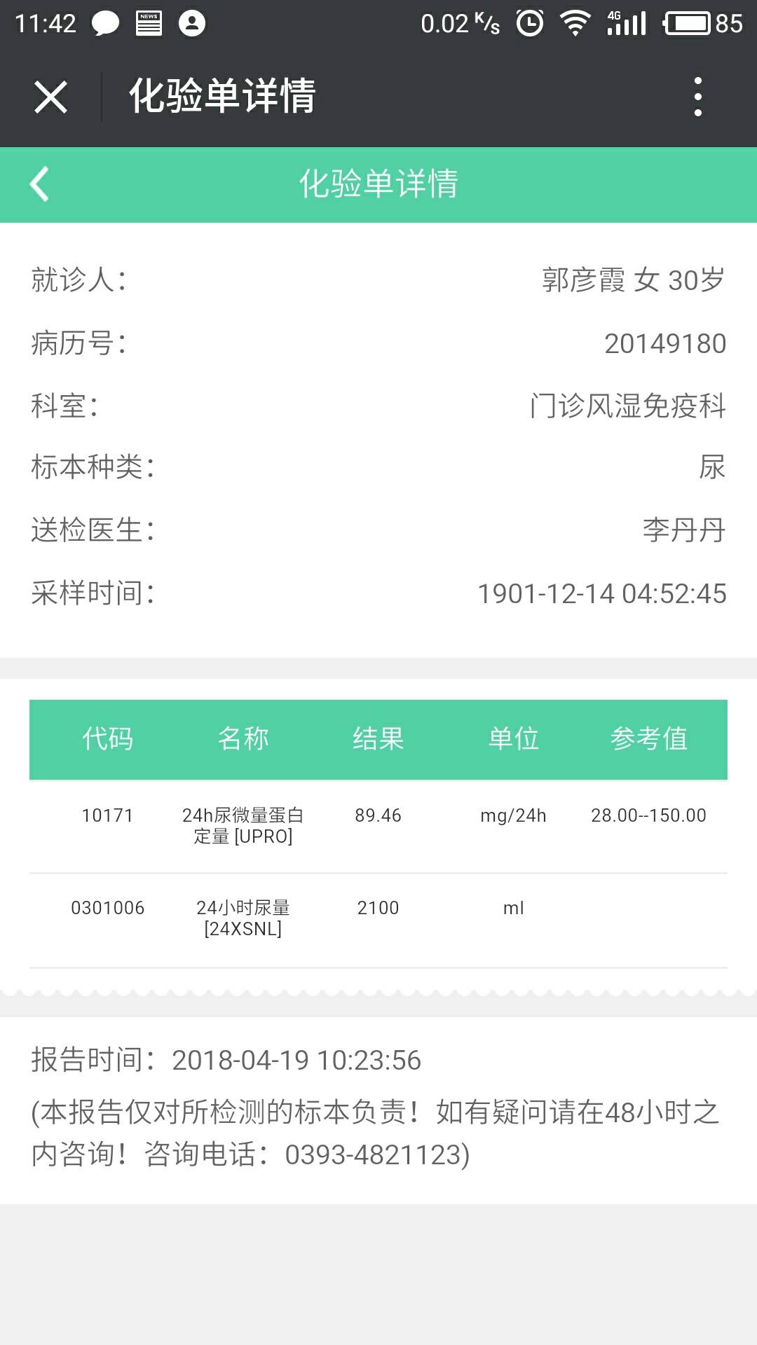 刚刚出来的24小时尿蛋白结果,正常的,而且比上次还好,稍感安慰了
