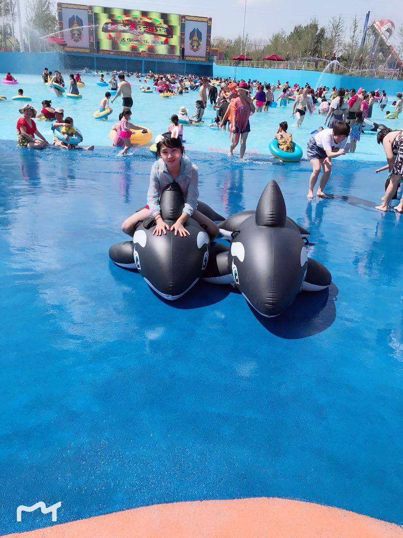 上午十点我们去的,先陪朋友买的泳衣 拖鞋 泳圈 大鲨鱼,然后进去玩,一直玩到下午五点,又去吃饭,晚上到家九点多了
