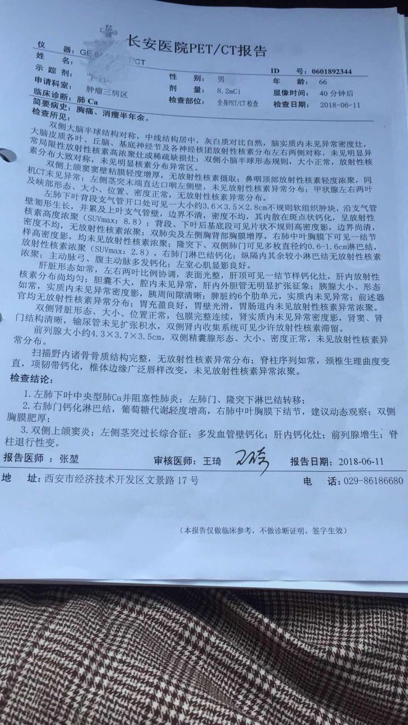 显示是没有远端转移,病灶也不大,应该3A左右分期!积极治疗吧,有病理报告吗?
