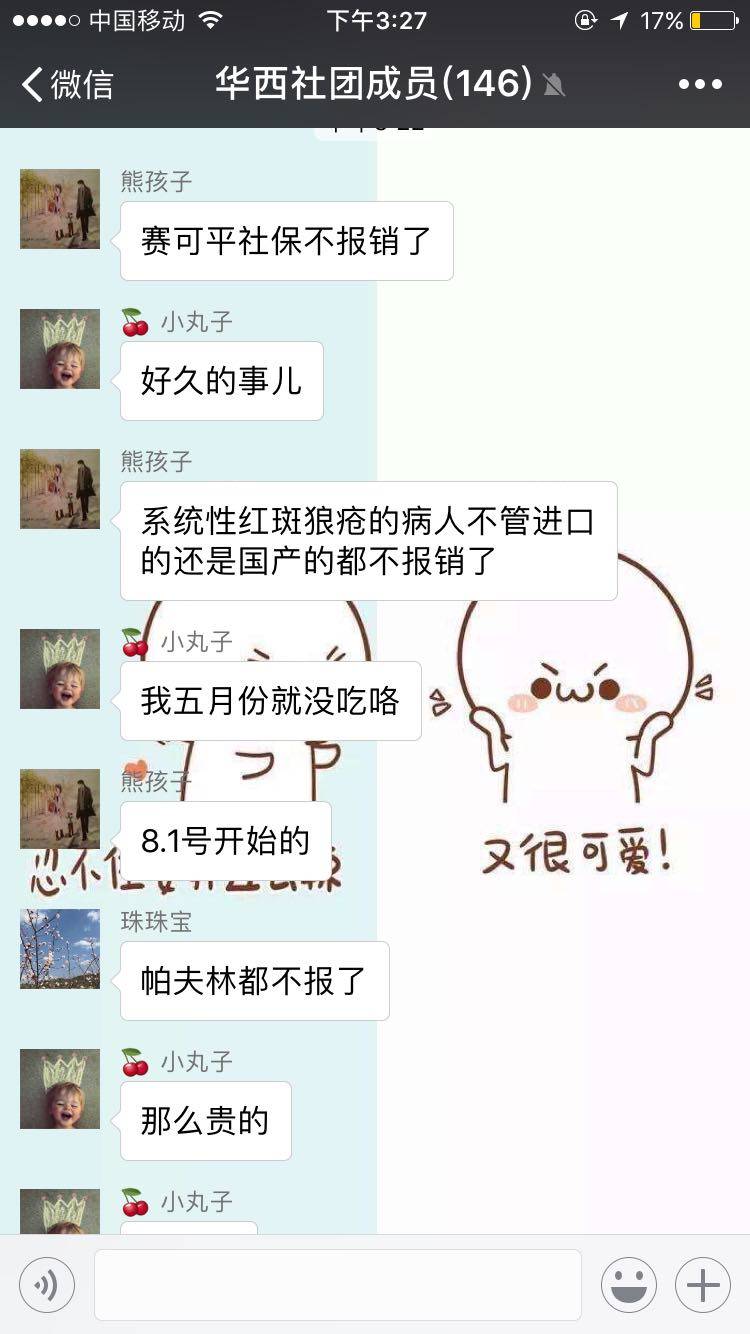 如题。,今天看到讨论的。赛可平 他克 环孢素 除了肾移植其他的都不报账了。只报纷乐和一部分便宜的。啧啧啧。说好了的我不是药神播出以后,习大大关注这方的呢。看来是关注白血病去了。狼疮是小病🙃🙃🙃
