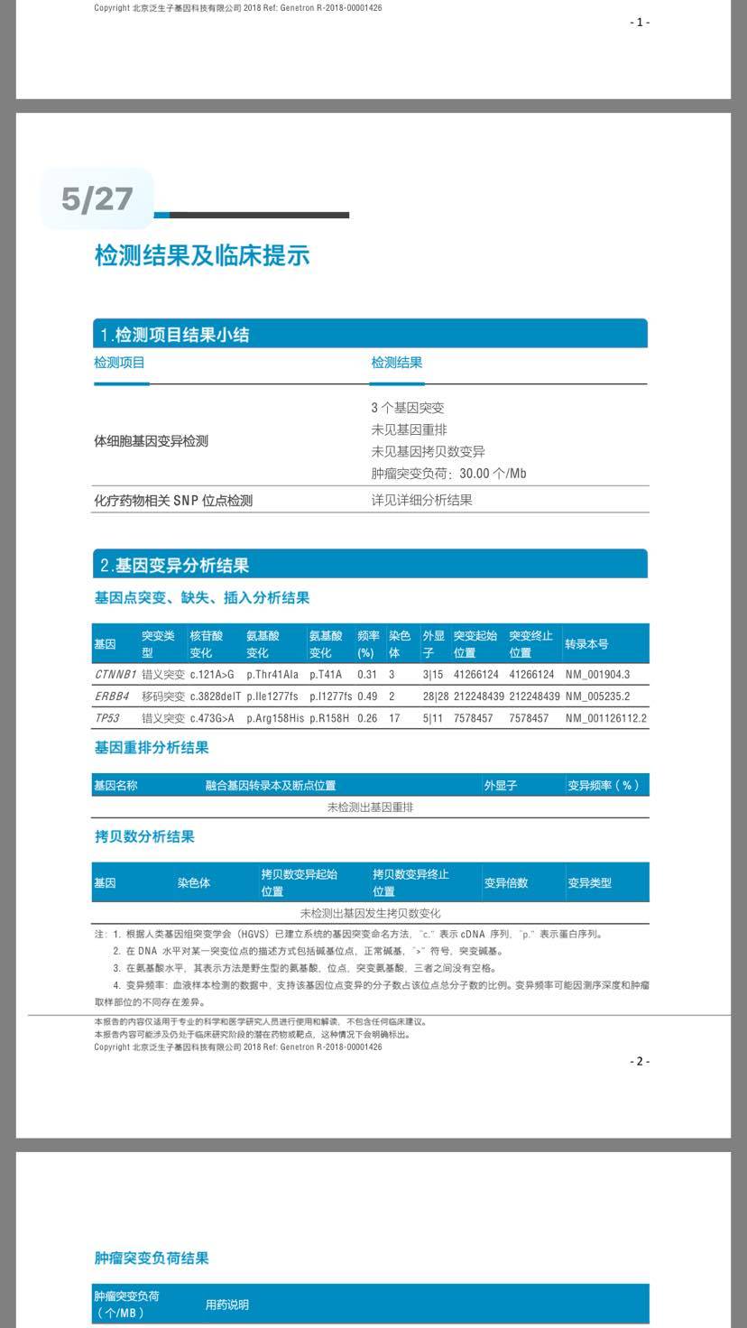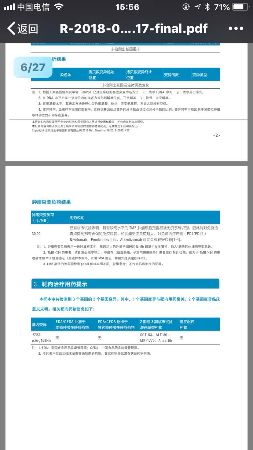 父亲基因报告刚出,没有靶向药!下面考虑放化疗,请问大家这个报告里tmb的一个是30吗?算不算高一点的值!有上pd1的必要吗?辛苦懂的朋友帮忙看一下!感谢