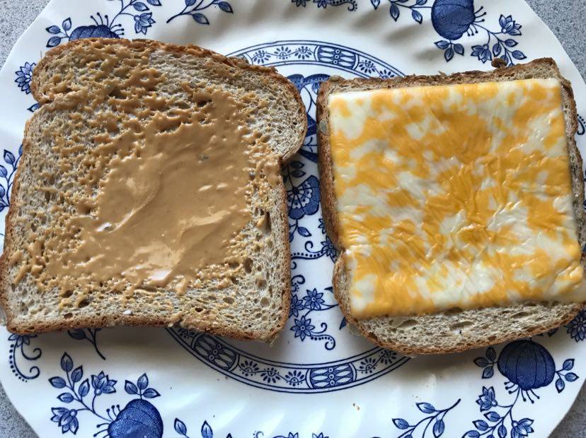 今天没事,睡到中午11点,秀一下我的自炊早餐:主要营养:一片三文鱼炒红洋葱,自家院里的小南瓜,小青椒,小番茄外加一个煮鸡蛋,主食芝士面包花生酱面包各一片,半杯加钙橙子,今天的早中两顿都在里面了