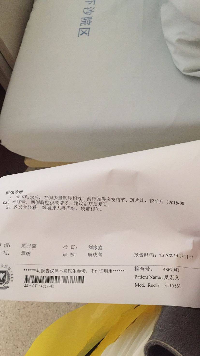 妈妈患肺癌已经有三年了,这三年来一直在接受治疗到现在,下面是妈妈检查以及治疗的过程。2010年10月,妈妈体检出肺癌IV期,纵隔淋巴转移,肝部转移,去省肿瘤医院复查,做了PET-CT,结果一样,省肿瘤