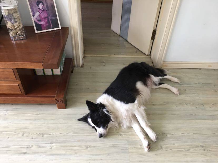 温度明显下降,蜗居,陪宠物狗狗玩。