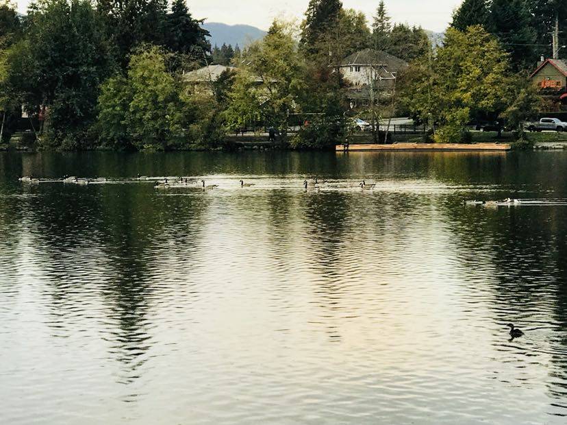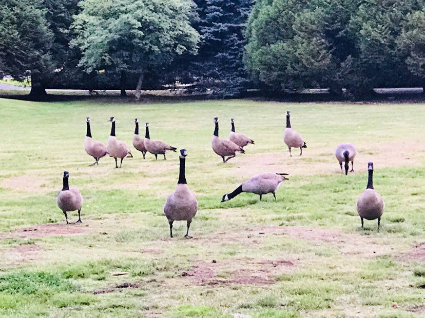 一群加拿大鹅拿眼睛👀看我,我马上就正了正我的假发🤣🤣🤣。它们不是也看出来我戴的是假发吧👀