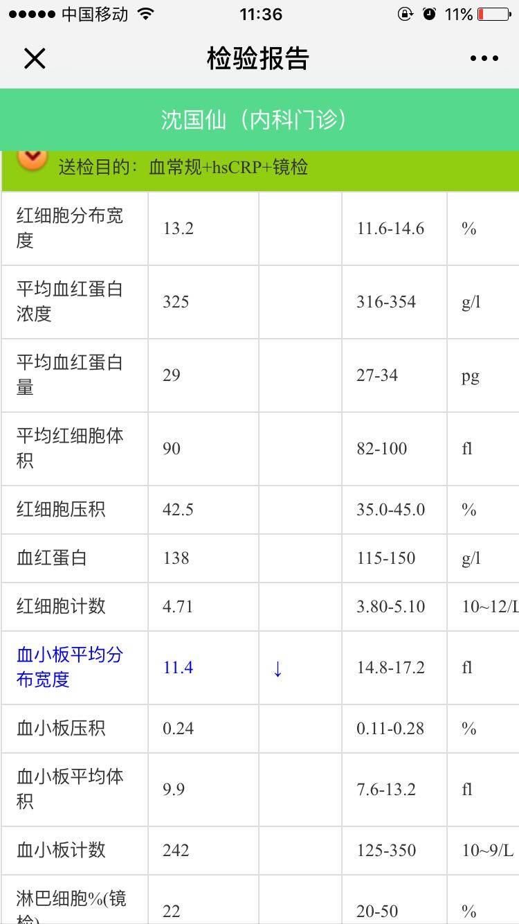 一疗后的第19天做的血常规,周末要进行二疗了,希望平平安安、健健康康的!加油,妈妈!