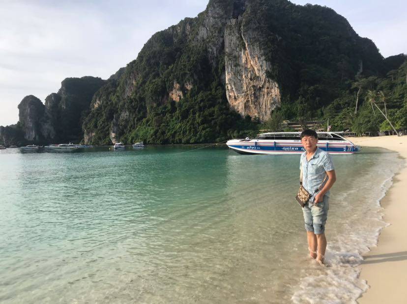 皮皮岛海水真好,他们三个人去玩水了,留我在沙滩上看包。
