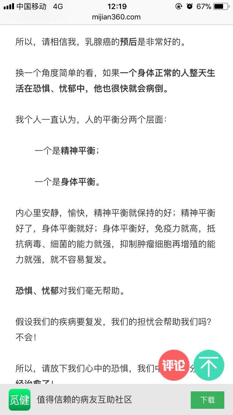 第一,能够保乳就是幸运的;第二,如果想活着,必须放下一切,除了生死,其他都是小事。