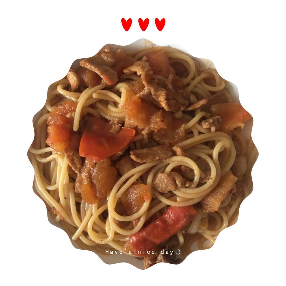 买了很久的意面,今天终于动手做了。哈哈,开心。