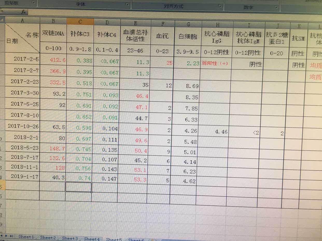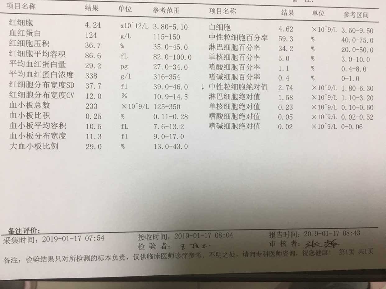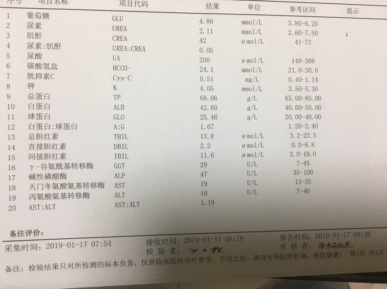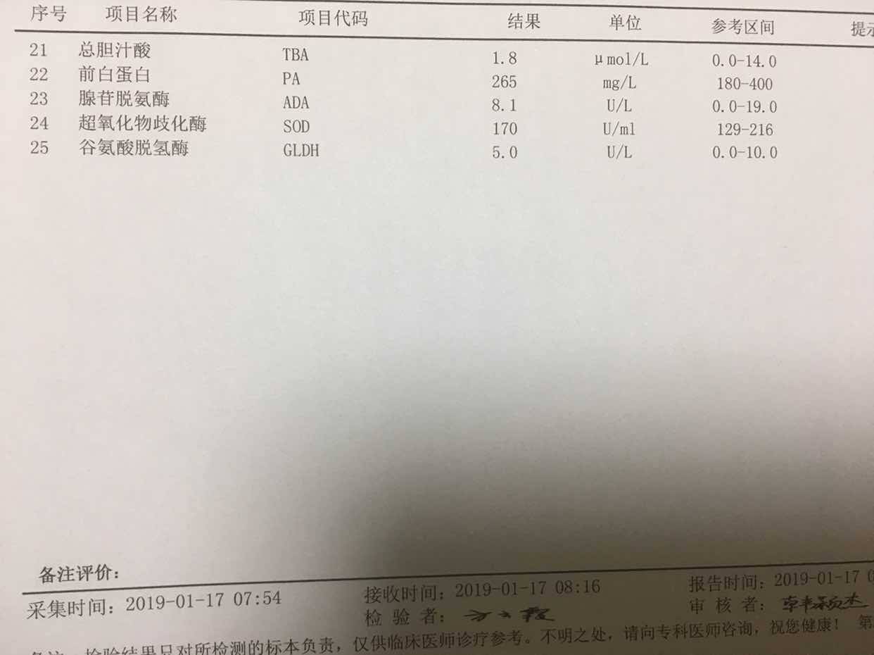 昨天复查结果如下