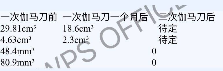 做之前其实有4颗,一颗体积27cm3,一颗8cm3,另外2颗很小。做完第一次以后,2个小小的已经打掉了。剩下一颗27和4,分别由于体积和位置关系,要做第二次。在做第二次前复查,27已经变成18,4变成2,希望第二次做完,下次复查的时候这2颗也能变小直至消失。🙏🏻🙏🏻见下图: