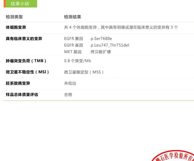 觅见肯定是个能给人带来好运的地方,上午发完帖子,下午基因检测结果便出来了,EGFR突变,但是19号外显子缺失,不太懂,但医生说如果只是单一的EGFR突变,靶向药效果可能会更好。医生说靶向药都可以吃,建议从一代开始,让我们自己选择,如果选择好了明天就可以出院回家吃药了。妈妈是职工医保,好像都是可以报的,不知道选哪种药好,后期又会不会耐药。大家帮忙看看检测结果,有没有好的建议?谢谢🙏