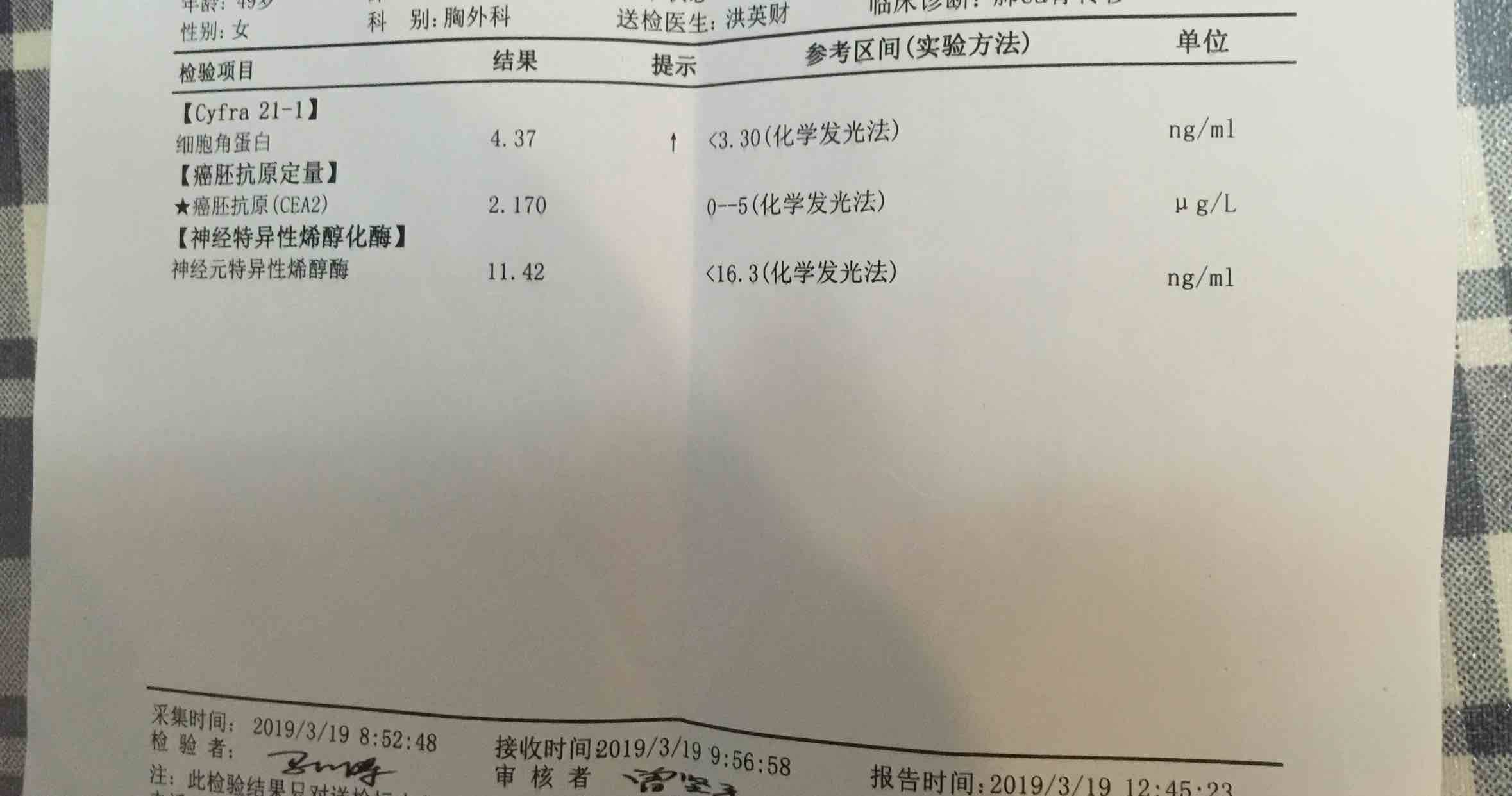 请问您第一张图片查的是什么项目?我妈妈也是腺癌,目前第一个月吃凯美纳,不知道复查什么指标?麻烦您看到回复,谢谢!
