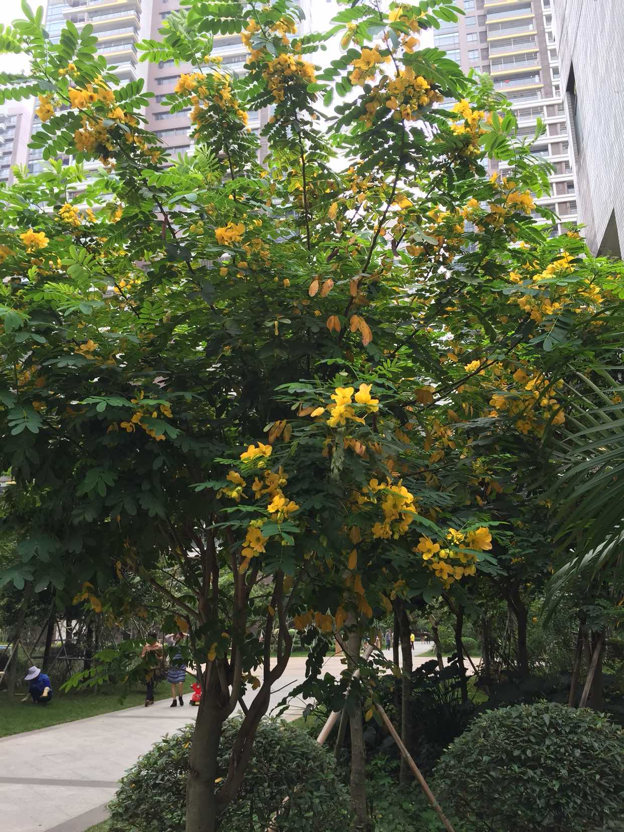 有时候,阳光下枝头上嫩黄嫩黄开放,而落花又和绿草茵茵一色。