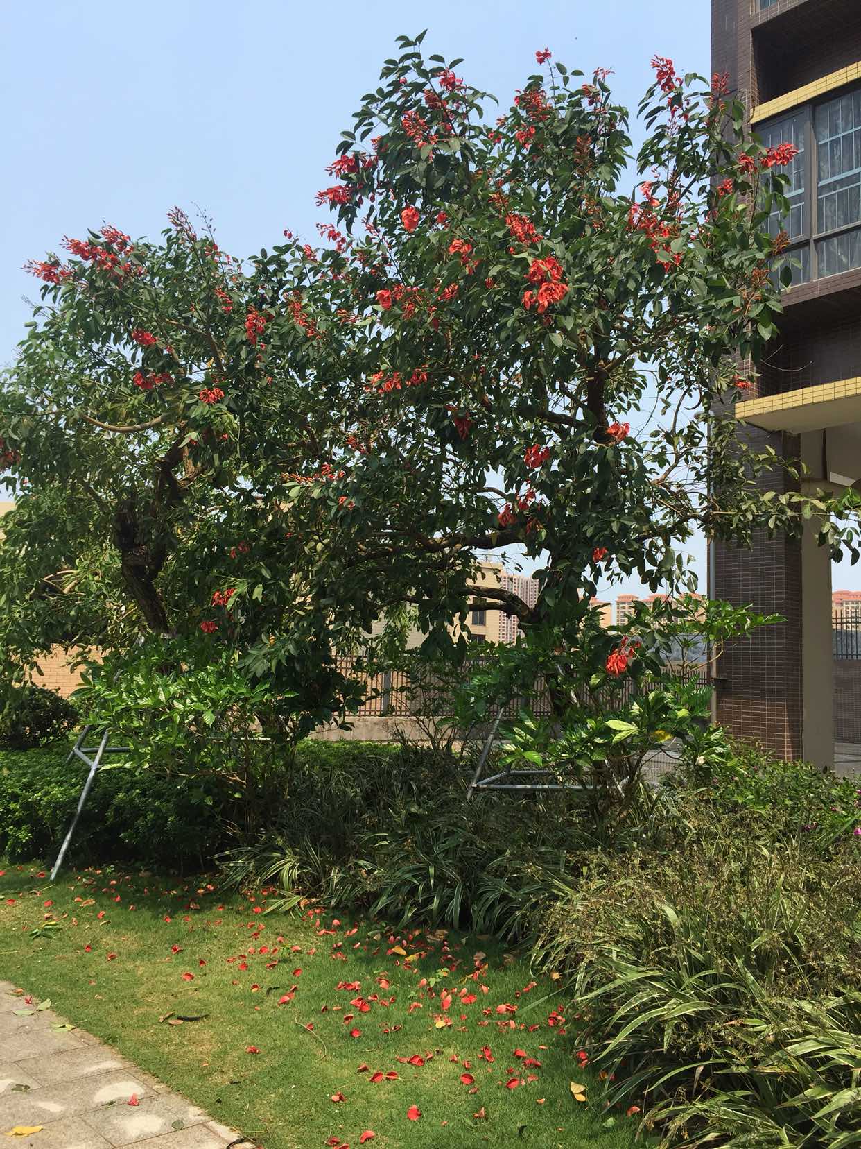 又有时,比如今天,雨后红色的桐花带着雨露飞身于草坪之上……