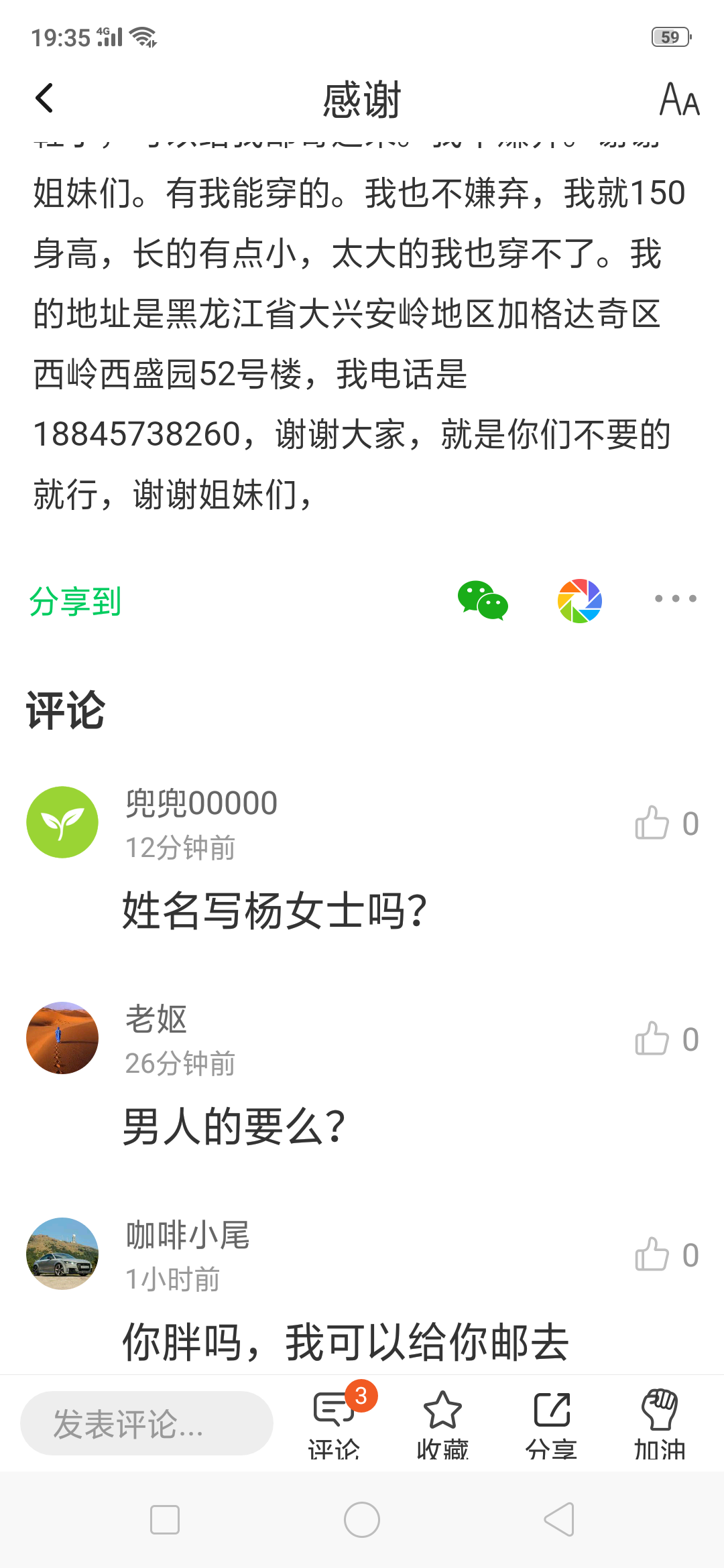 我记得有姐妹上次发帖,合适的衣服可以寄给她,我现在有些小孩的衣服,我女儿11岁,156高,有好多春夏的又很干净的,都是9层新或者全新的衣服,如果你还需要我可以免费寄给你,扔到小区回收桶不知去向,我更希望可以帮助到需要的姐妹!