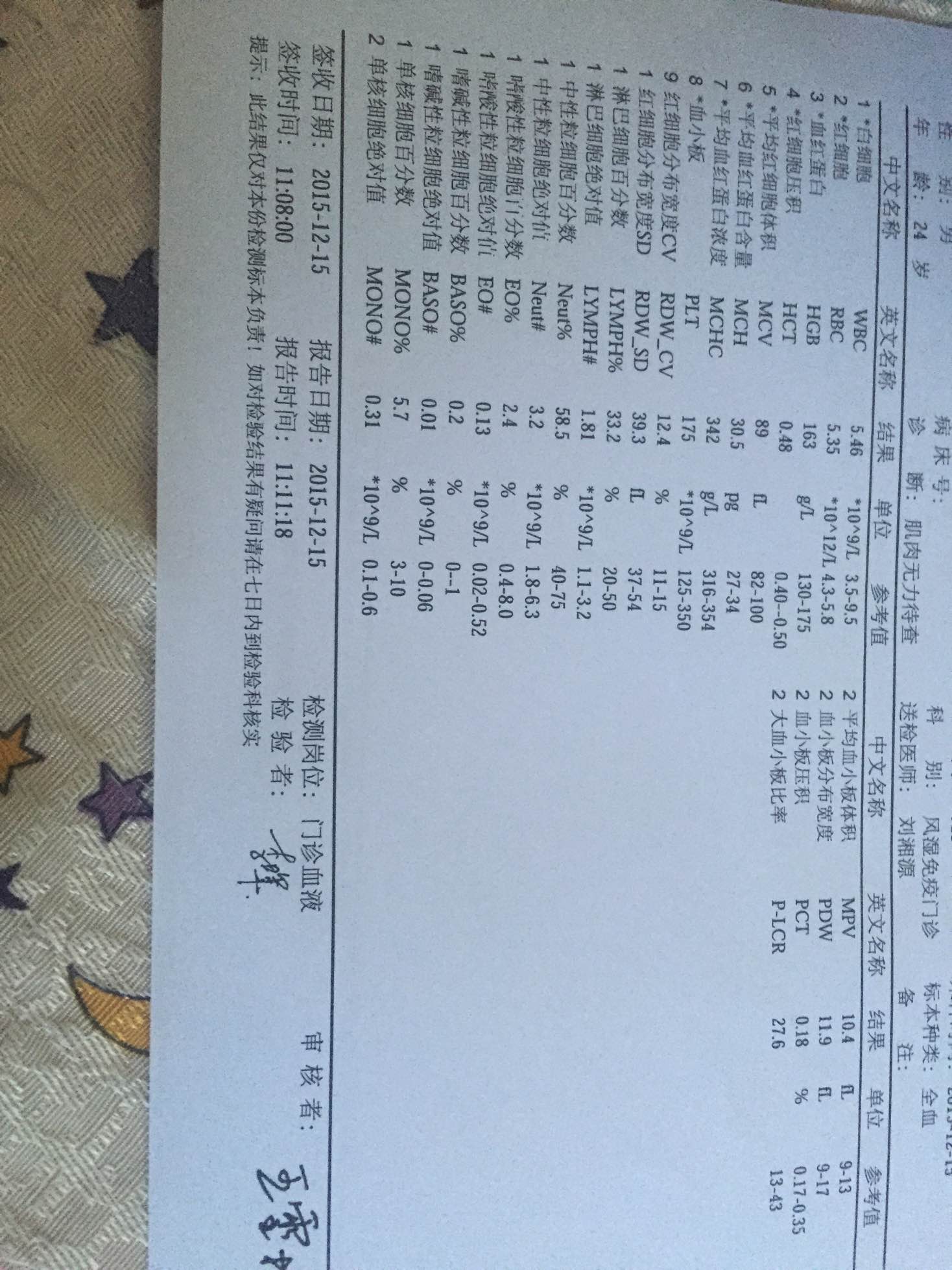 本人男,24岁,在北三检查的,之前症状很多,现在是浑身乏力,脊柱弯腰疼,脸上有些小皮疹,关节偶尔不舒服。检查结果当天只是出来下面这五项,当然还有很多,没出来。当时看大夫,大夫说不能够确定。在印尼检查ANA抗体阳性1:320。下面请大家帮忙看下。能不能够确诊。