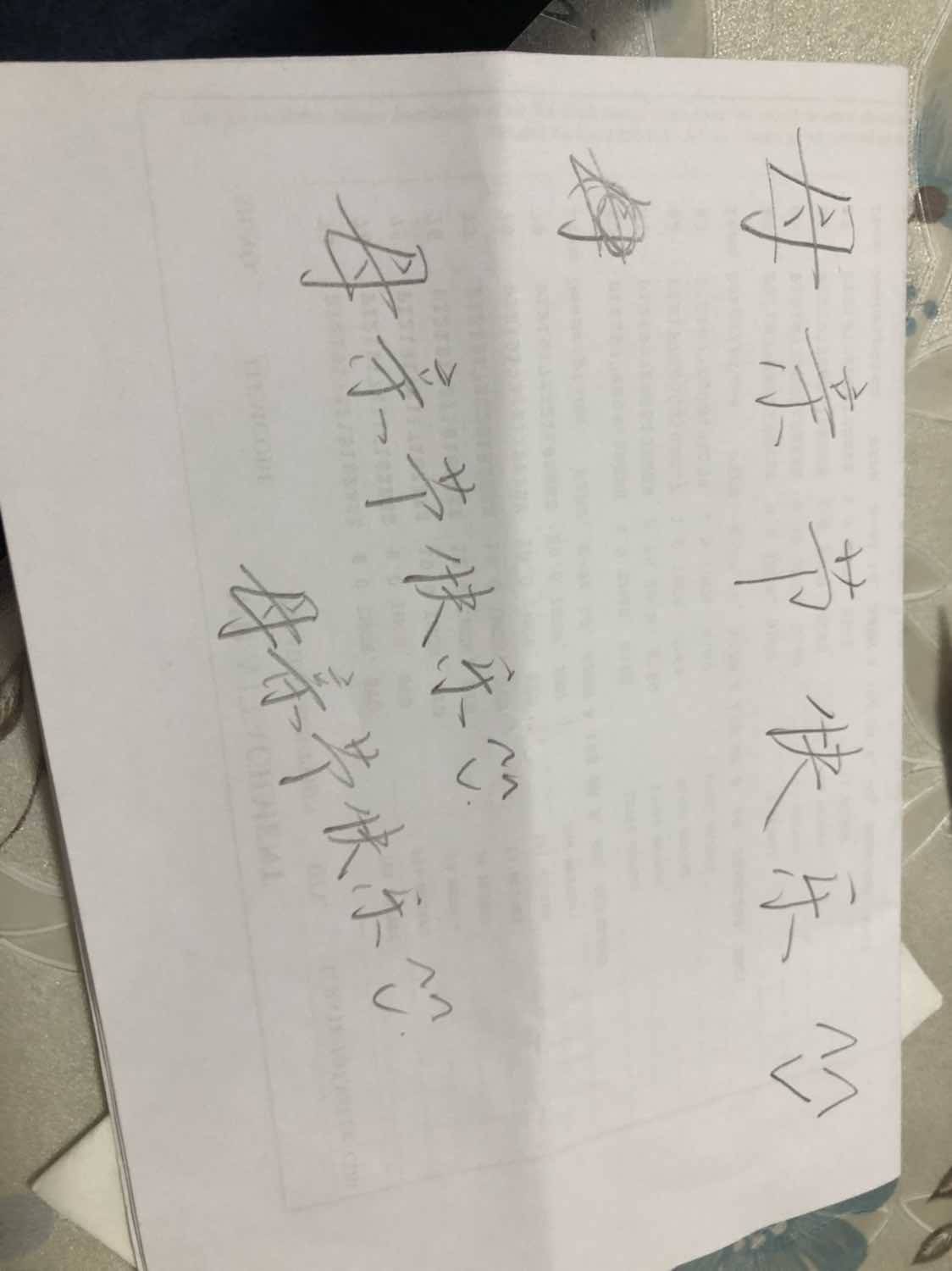 女儿手书的母亲节礼物有点草率。(她自认这字能卖100元)