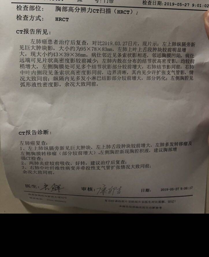 今天带妈妈复查了,医生说开始耐药,可以试试一代 三代,但未必有效,最好活检后再试