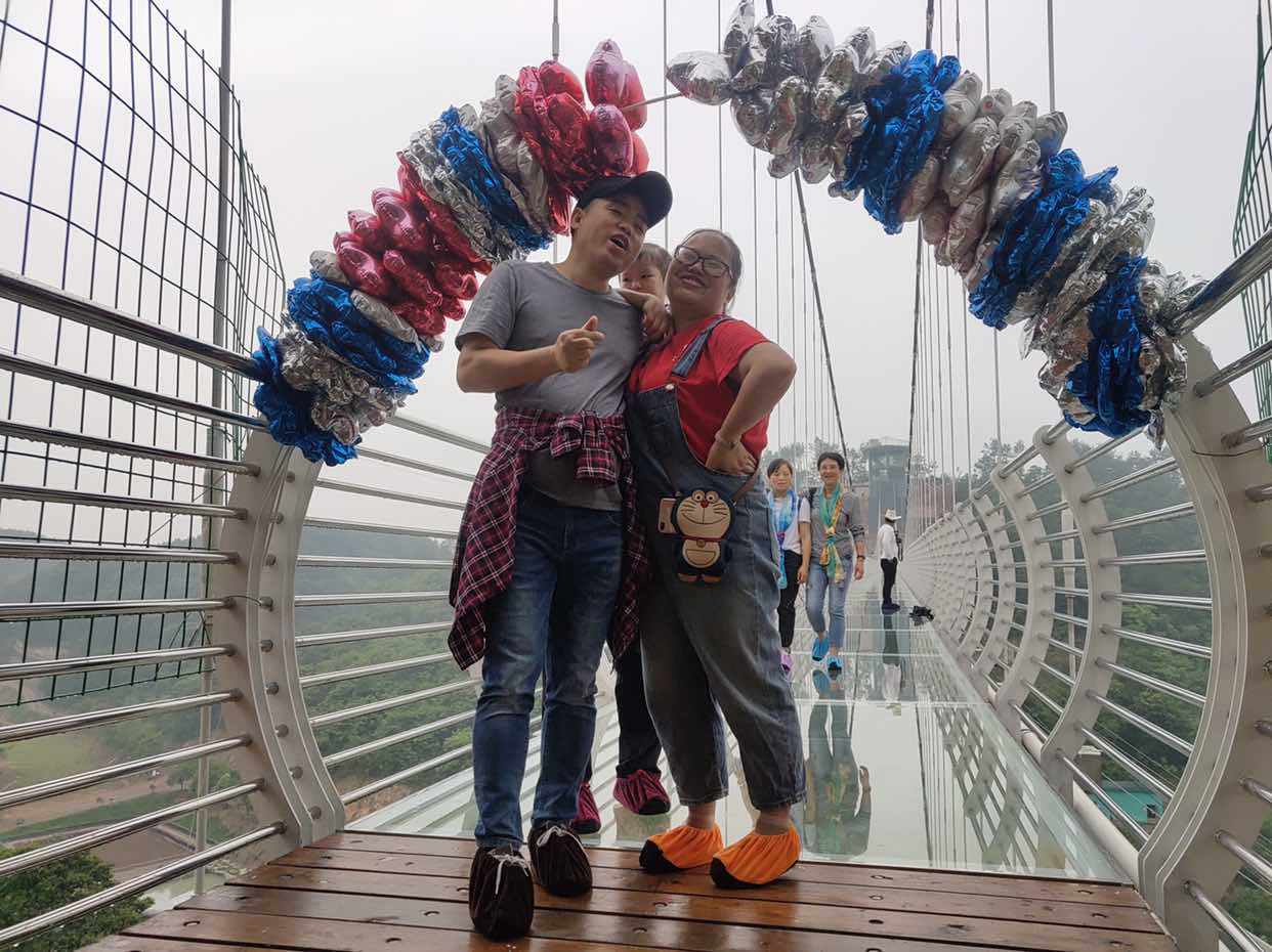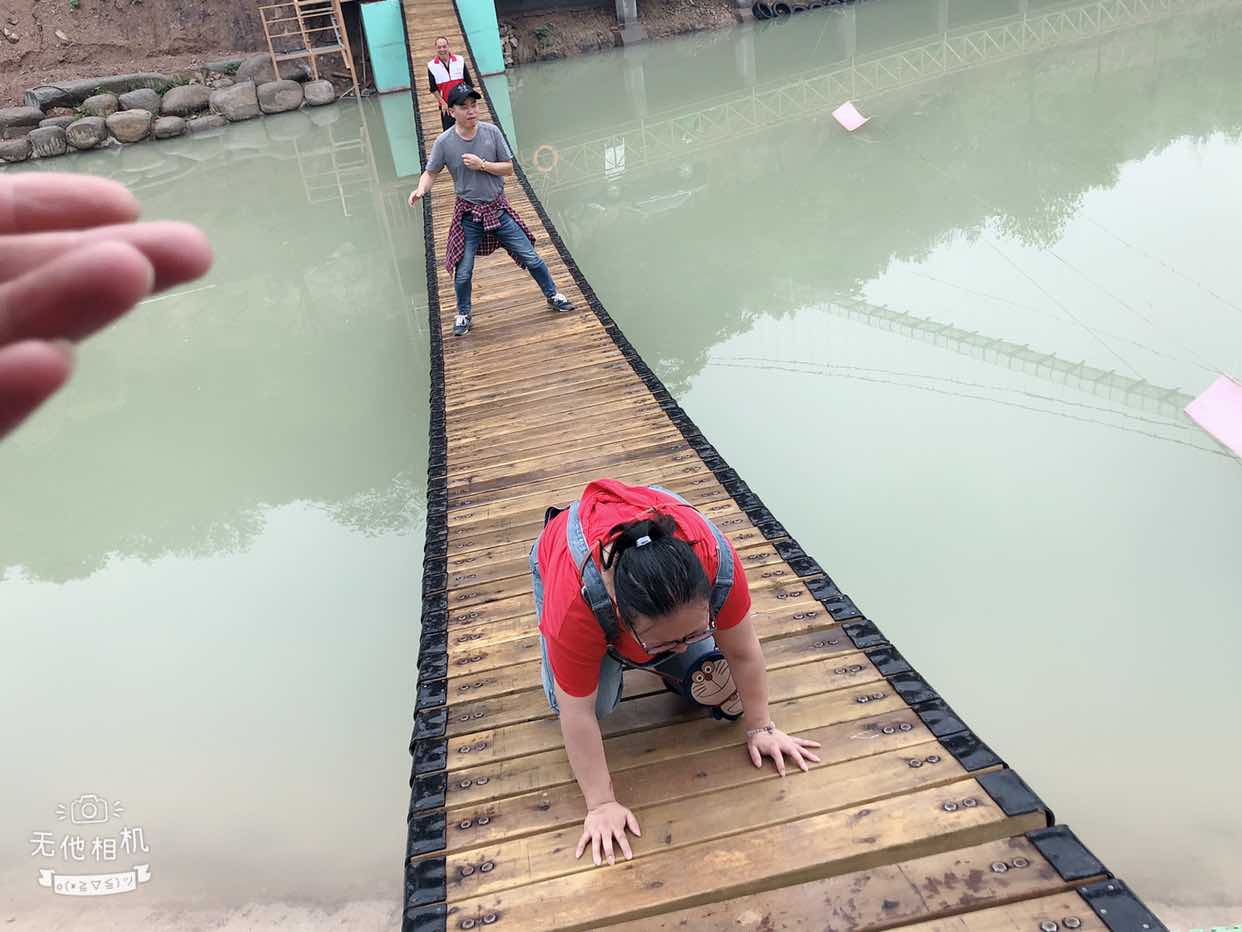 过了玻璃桥,滑滑梯,网红桥,蹦蹦床。。恐高症患者,过玻璃桥丑态百出。网红桥上,差点掉水里去,吓得爬着回来。。。蹦床上,摔得四脚朝天。。