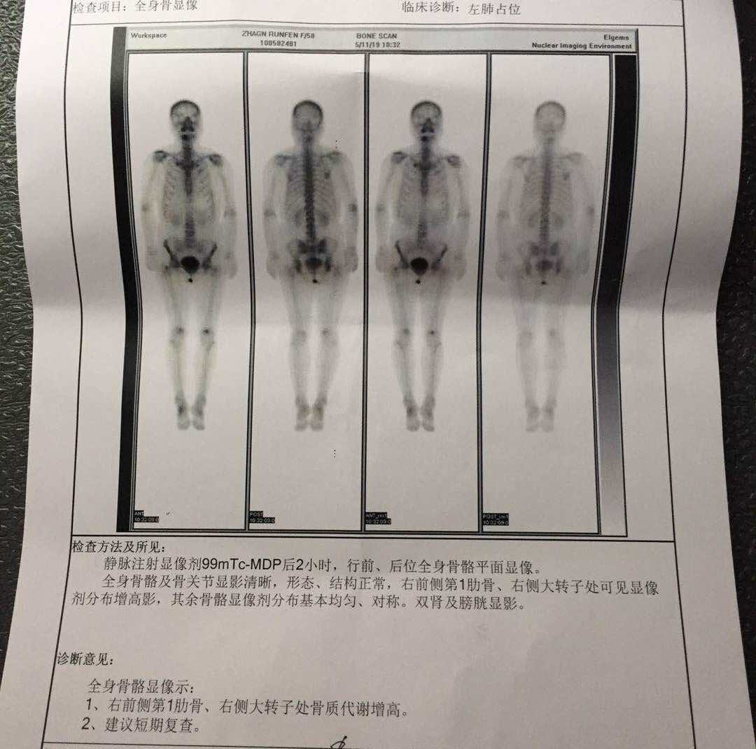 想带上妈妈检查的所有资料去北京找专家出一个治疗方案,但是我们当地给出的一个全骨扫描去省医院看都说看不清楚要要原片子,但是去拍片子的那家医院问了说没有原片子就一个这样的报告,这个大家的全骨扫描也是这样的吗?