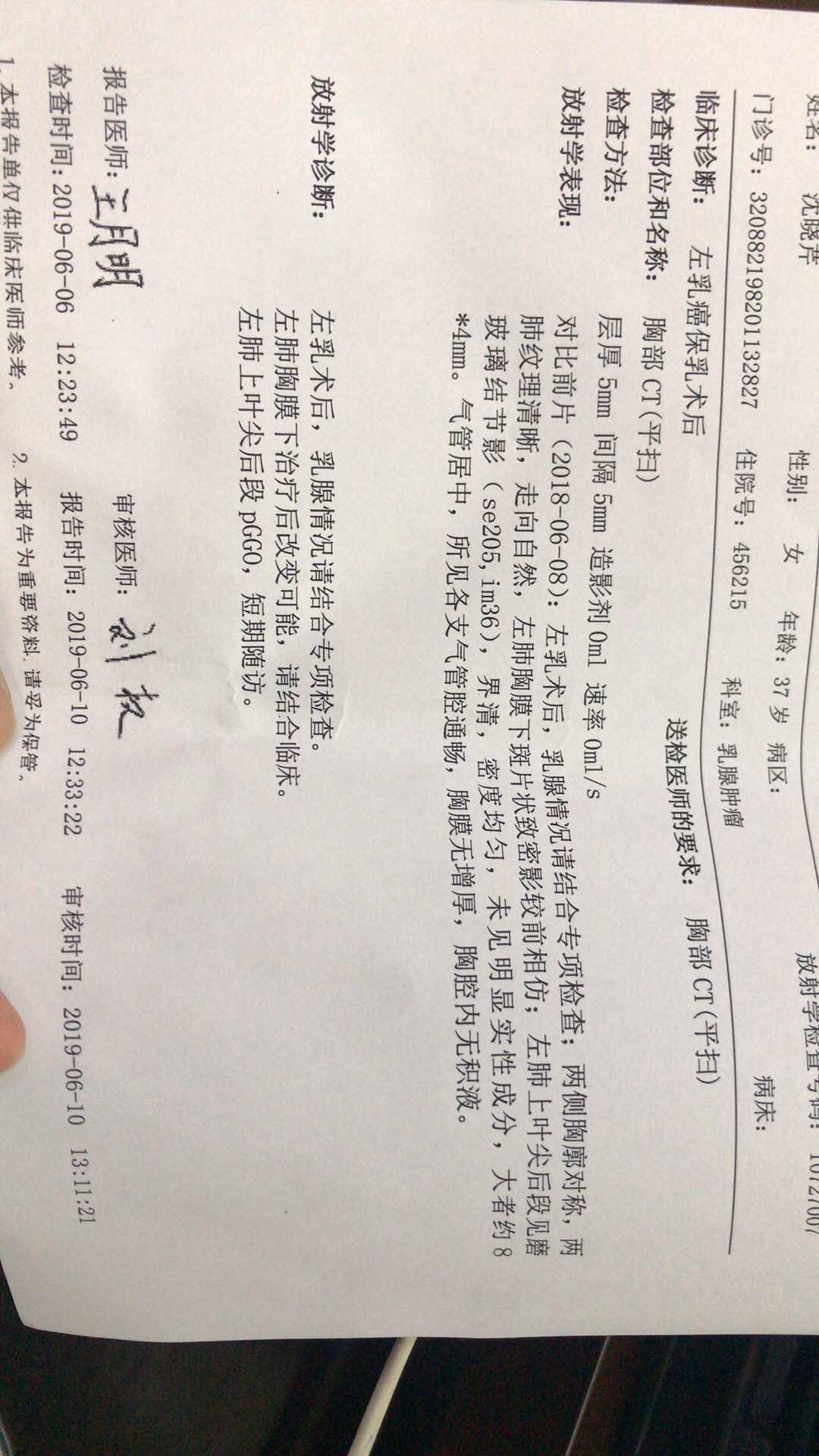 高密度影是放疗后引起的,一般没症状的话没关系,我的医生看了片子才发现我得了放射性肺炎,具体你要让你的医生看了片子才能知道什么情况,CT科的医生得出的结论只是写个大概,不用急的
