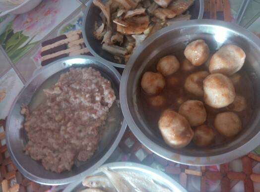 妈妈吩咐,鱿鱼丝剁肉饼,鱿鱼丝不仅仅可以这样吃,还可以做菜料的哟。我自己做了个咖喱鱼蛋,蒸了鱼,蒸了鱼干,就这样了,又一顿。