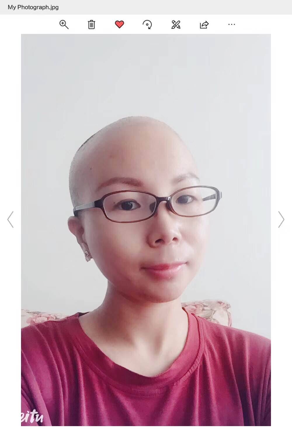 开始化疗了,选择是医保药还是自费药的时候毫不犹豫的选择了自费的,因为自费的不怎么掉头发,就这样安全的度过了前四个疗,到第五个疗要换药的时候问主任用什么药?主任说白蛋白紫杉醇副作用小点,但肯定掉头发。我说那有不怎么掉头发的吗?主任说了一句“头发掉了再长,活命重要啊。”