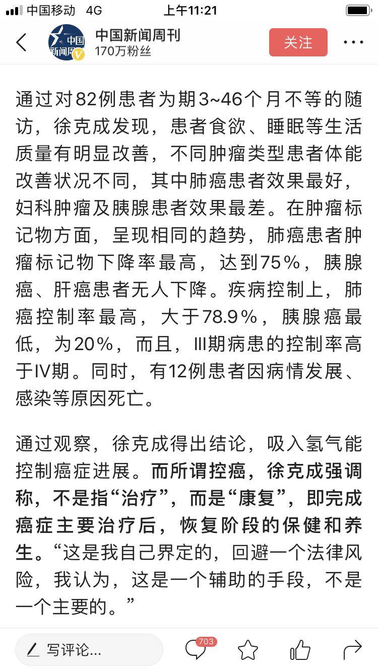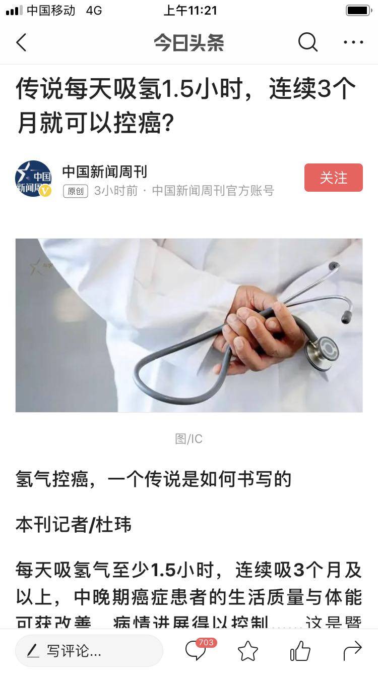 关于氢气控癌,大家有听说或尝试的吗?