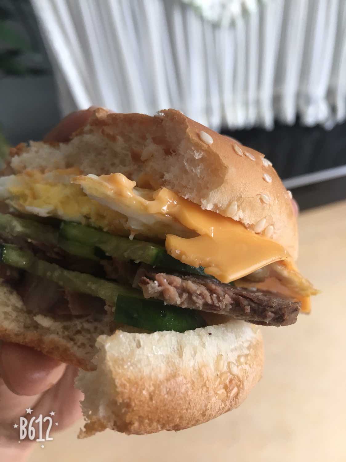 进门儿子正趴在地上捣鼓他的那堆堆车(我就纳闷了从1岁多开始到现在马上8岁了,他对车的痴迷丝毫未减),老公已经准备好了早餐,虽是周末但应该可以说仍是一如既往的简单便捷、营养应该也足够,每人一个自制汉堡(胚子、芝士商超成品,内含牛肉切片是老公自酱牛肉切的、🍳也是手工制作、黄瓜切片)、一份蒸贝贝、儿子的牛奶泡圈圈、我的纯牛奶、老公的绿茶。