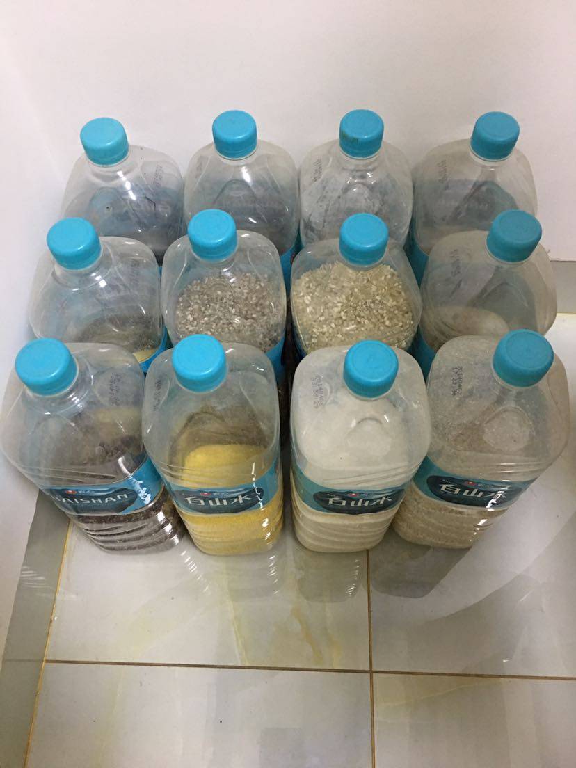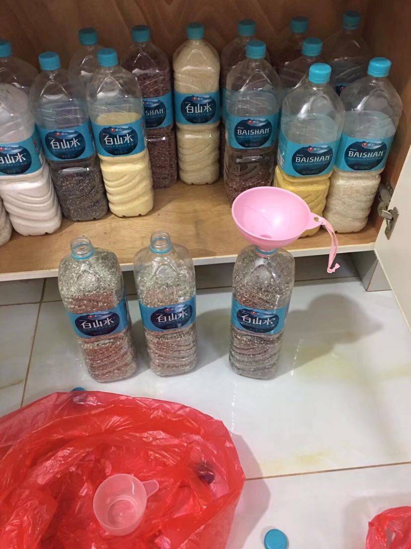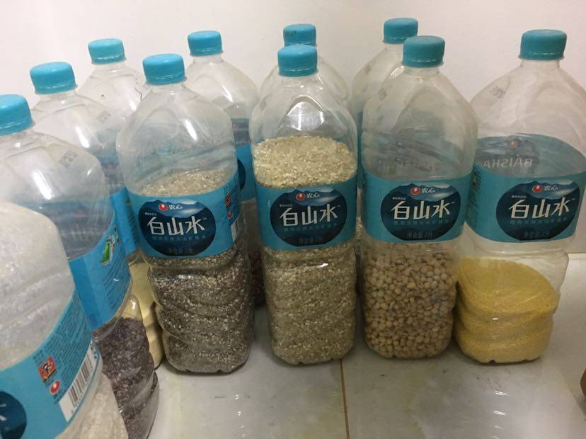 强迫症要一样的矿泉水瓶子做了家里干货五谷杂粮的存放呵呵🤭