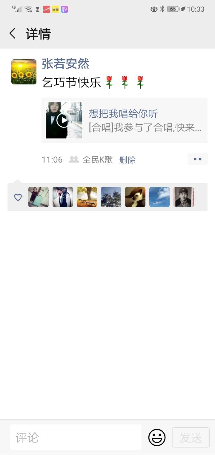 今天是七巧节,上午老公发了红包,这是第一次,我没有用软磨硬泡的方法得到的红包😬,我认为值得庆祝一下,因为高兴,因为心情好,所以还唱了一首歌——《想把我唱给你听》愿大家心中都有美好🤗🤗🤗