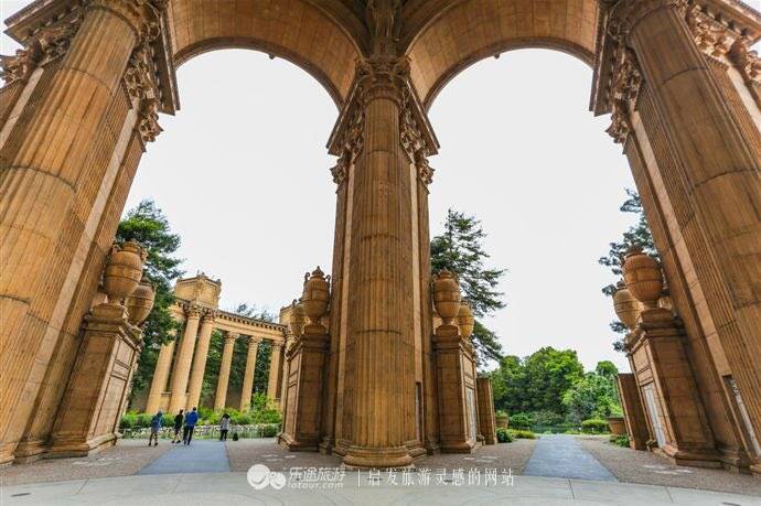 7月19日傍晚我们来到了旧金山艺术宫,呈现在我眼前的建筑物,就是精雕细琢的艺术品,古典的美极其精致,不愧为艺术宫。