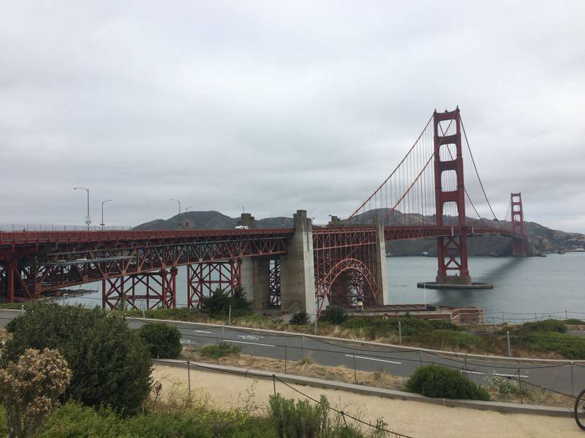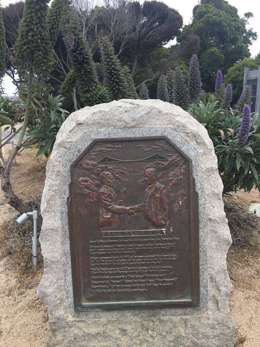 第二天一早去了旧金山的金门大桥,这是世界上著名的桥梁之一,也是近代桥梁工程的一大奇迹,由桥梁工程师约瑟夫.斯特劳斯设计,用了四年时间建成,有八十多年了,由于阴天照片效果差些。