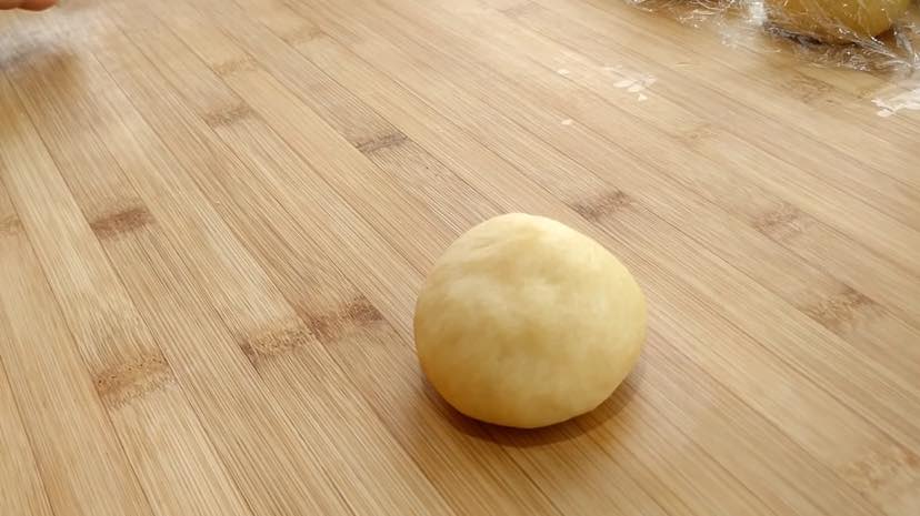 8.把面揉搓成长条,切大小均的面剂,把每个面剂用手揉圆,揉好以后盖上保鲜膜防止干裂。
