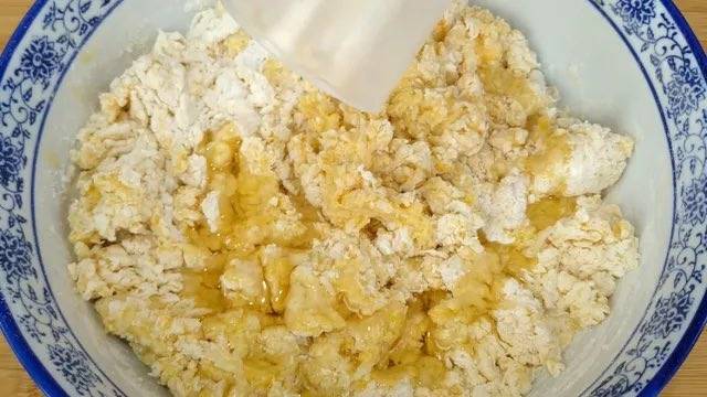 4.用筷子搅拌成絮状,加入25ml食用油。